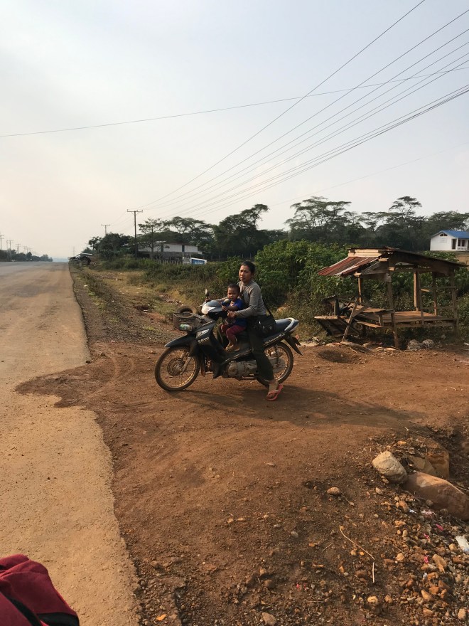 Mine de rien, on est bloqué plus d’une heure après le repas, on va donc être obligé d’écourter nos visites. On ne fera qu’une cascade au lieu de deux, on doit vraiment arriver à Pakse avant la nuit.