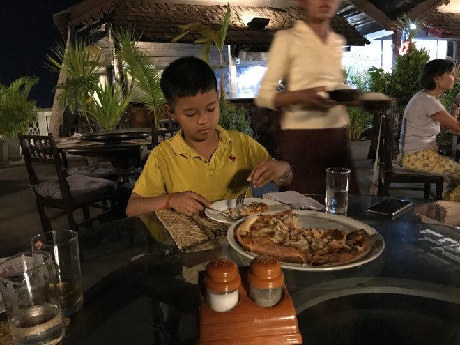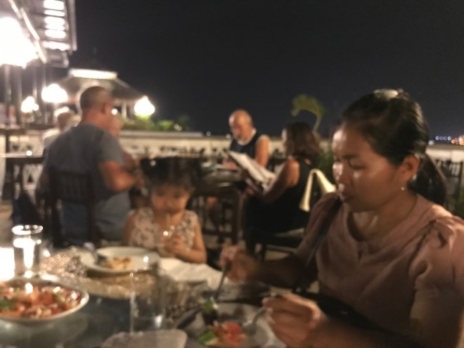 Le soir, on les a invités dans un restaurant que j’aime bien, sur le toit d’un hôtel, les enfants n’avaient jamais pris un ascenseur et les parents n’avaient jamais été dans un resto si « chic », pourtant modeste je vous assure, mais avec une vue incroyable sur la ville. C’était un bonheur de partager ce moment avec eux une fois passée la gêne pour eux, d’être les seuls asiatiques, à part les serveurs, de tout le resto 😉