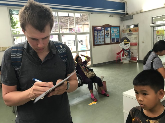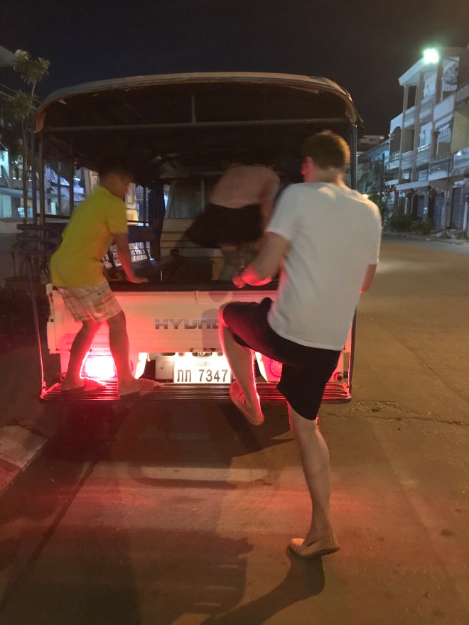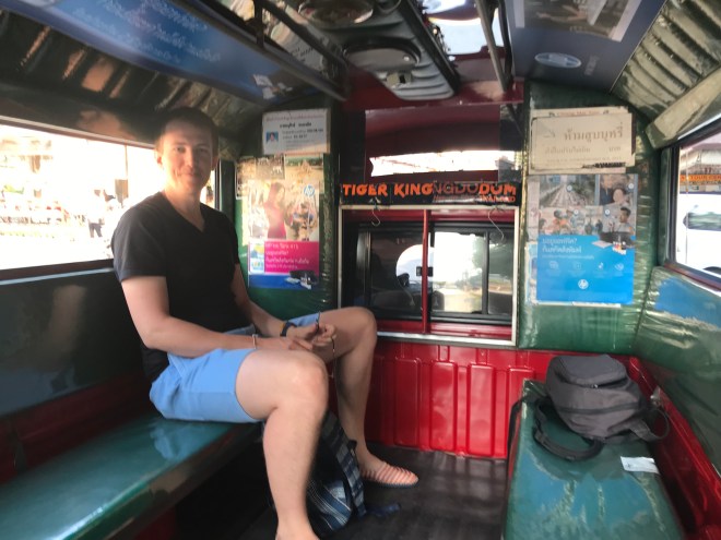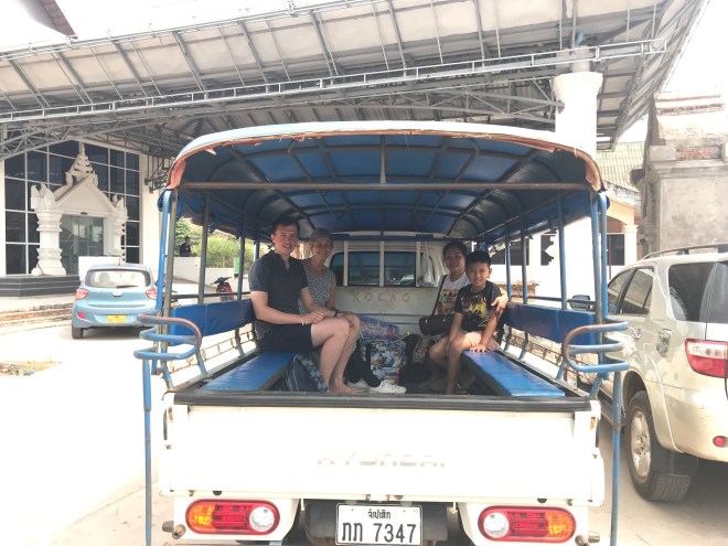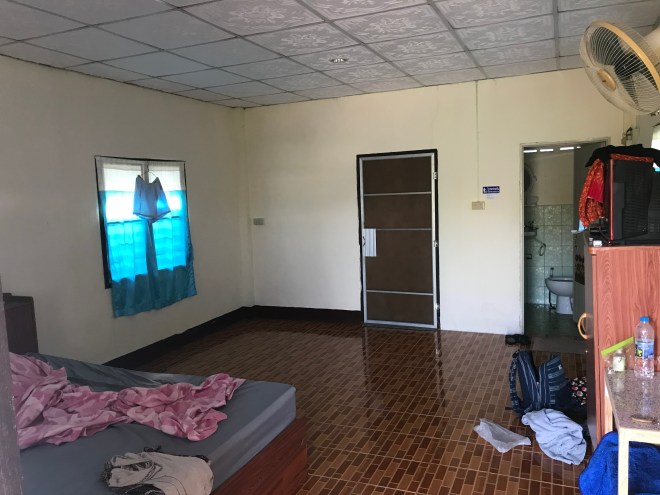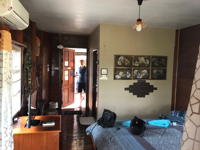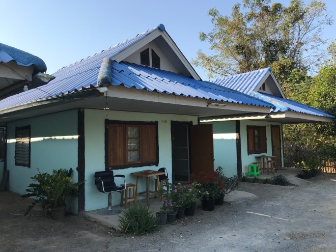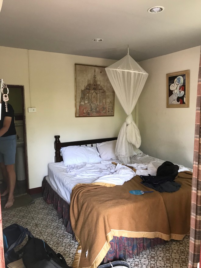 Le réceptionniste du Baan Thaï, Mister Nate, est adorable, il nous a réservé un tuktuk qui nous déposera au bon arrêt de bus, il a appelé notre guesthouse pour s’assurer qu’ils avaient bien notre réservation et comme nous allions arriver après la fermeture du loueur de moto et que leur maison était située en dehors de la ville, il a convenu avec eux qu’ils viennent nous chercher à l’arrivée du bus dès qu’on les appelait. Il s’est avéré que c’était une super idée d’autant que le propriétaire parlait à peine anglais et qu’on aurait jamais trouvé la maison tout seul (peut-être avec maps.me, et encore…).