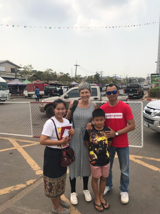 En tous cas, j’ai vraiment de bons amis là-bas. Pour notre dernier jour, Phonesavanh et Konthong, son mari, nous ont emmené en balade à la cascade qu’on avait déjà faite avec Paul ( l’inconvénient de ne pas parfaitement se comprendre faute de maîtrise de l’anglais pour Phonesavanh et du laotien pour moi !). Mais ce n’est pas grave, on a passé un bon moment. Paul a pu voir leur maison, elle est loin d’être finie, parce que leur budget est très serré bien qu’il soient tous les deux profs. Ils ont un crédit sur leur voiture qui correspond quasiment à un de leurs salaires et l’école des enfants ( celle où ils travaillent tous les deux est payante, et chère, pour ceux qui ne sont pas orphelins…).