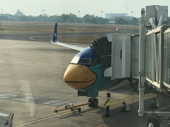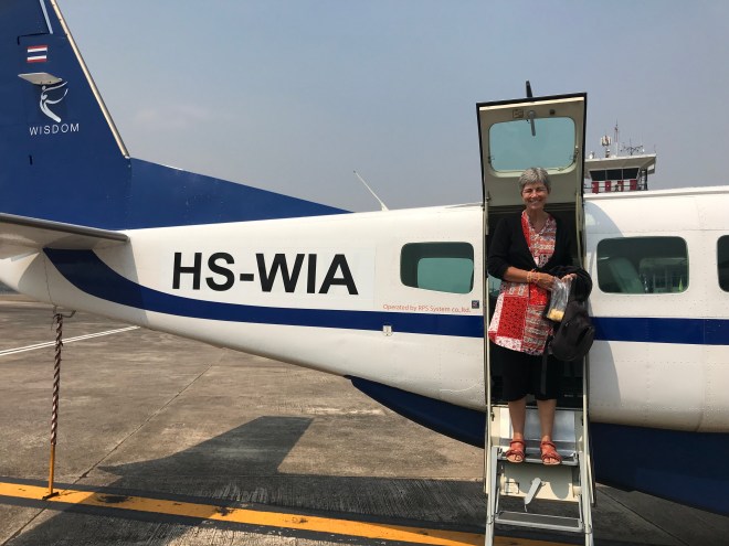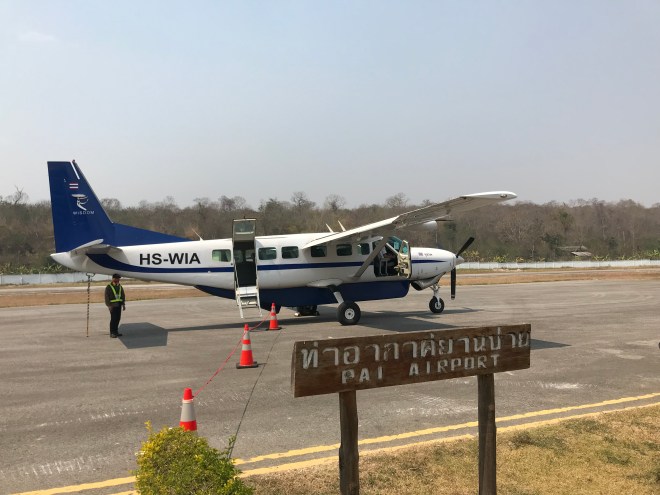 Article court, journée consacrée au voyage. Tout d’abord, nous devons nous revenir à Chiang Maï. Et comme je n’ai aucune envie de refaire 3h de virages en mini van et qu’il existe une liaison aérienne, qui fait le même trajet en 30 minutes, autant l’utiliser 😉