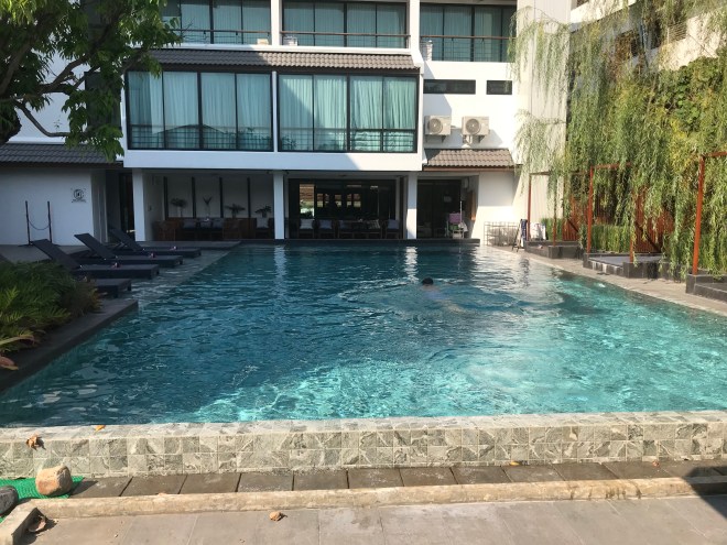 Ce n’est pas tout ça, mais il fait chaud, alors retour à notre nouvel hôtel qui a la bonne idée d’avoir une piscine, à 15€ la nuit, c’est la moindre des choses…
