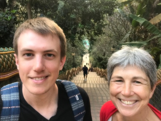 Et c’est reparti, cette fois un peu en dehors de la ville, pour voir un temple sur une colline, je n’ai toujours pas de nom à vous donner… Notre chauffeur (et sa femme) doit passer chercher son fils à l’école, ne nous demande pas notre avis et fait un détour. Ils n’ont pas la même notion de séparation vie privée/vie professionnelle ici, ce n’est pas rare de voir toute la famille participer ( que ce soit dans les transports, au resto ou dans les commerces). Mais j’aime bien, c’est moins prise de tête et tellement plus naturel…
