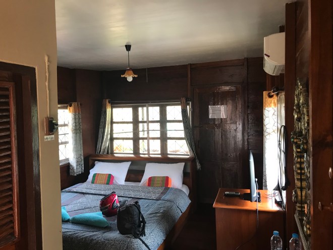 Arrivée tardive, mais on était parti tard, déambuler pour trouver une guesthouse au hasard, remettre à demain la location de moto et dîner.