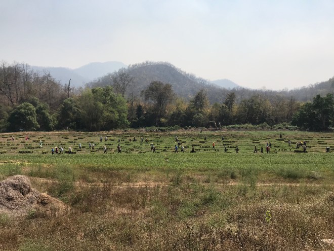 Nous traversons le canyon de Paï, rien à voir avec ceux des US, mais ça nous permet d’observer des ouvriers agricoles au travail dans les champs et une petite source d’eau chaude souffrée.