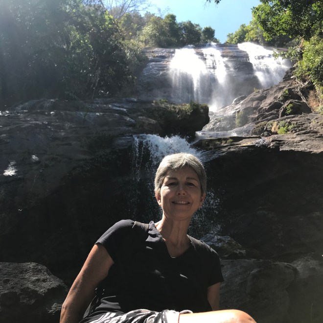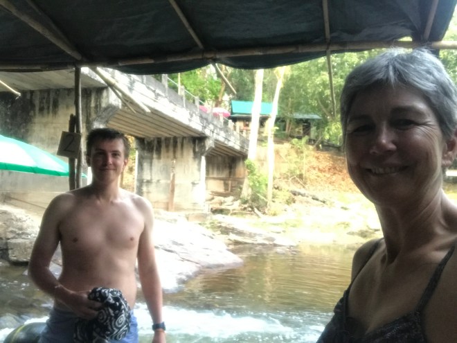 Puis il fait de nouveau chaud, on redescend au niveau de la mer, ou plutôt du Mekong, alors cette cascade est la bienvenue, même s’il commence à se faire tard.