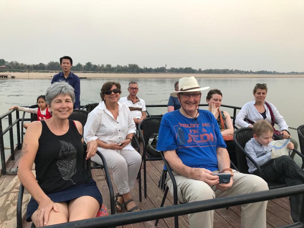 Après la visite, Sina nous emmène déjeuner sur Don Daeng, une petite île située juste en face de Champassak, première traversée en pirogue du Mékong pour mon père 😉.