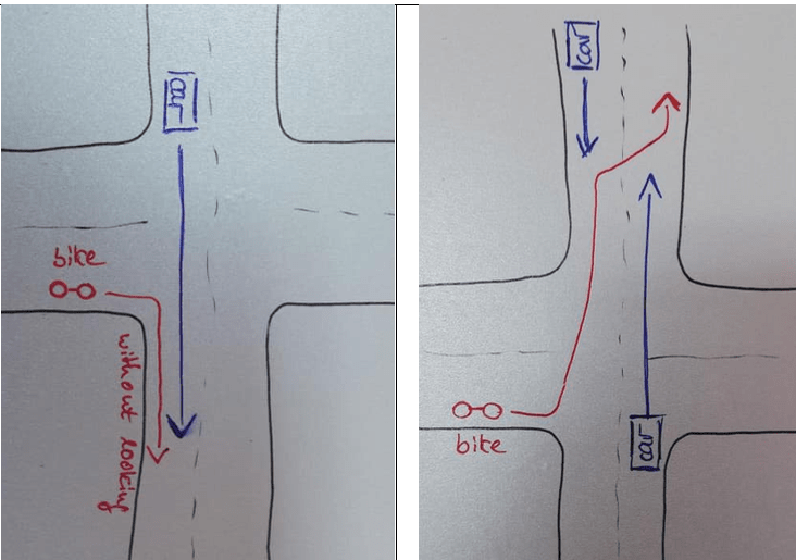 Aujourd’hui, journée cool histoire de garder des forces pour les prochains jours qui vont être beaucoup plus intenses. Je déambule un peu en moto et à pied dans Paksé, j’aime regarder les gens vivre, m’imprégner de l’ambiance, des sons, des odeurs, des lumières. Tout est à la fois pareil et très différent de chez nous. Il y a une forte agitation en début de matinée, on a l’impression que tout le monde va dans tous les sens : qui va chercher de quoi prendre le petit déjeuner, qui emmène les enfants à l’école, qui part au boulot, qui nettoie sa maison, sa boutique, qui bosse déjà sur le trottoir devant chez lui. Des tas de motos/voitures se croisent et s’entrecroisent dans un ballet qu’on pourrait retrouver un peu à Paris en inversant le ratio voitures/motos et où les motards n’auraient quasiment jamais de casque et où il y aurait plus souvent 2, 3 voire 4 personnes sur la même moto…J’ai trouvé sur le net un petit dessin qui illustre assez bien la circulation de Paksé, je me suis permise de vous le copier, j’espère que ce sera compréhensible, c’est tellement ça !