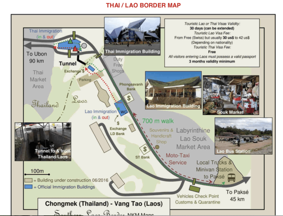 On a rendez-vous à 18h à la sortie du tunnel juste après le bureau d’immigration de la Thaïlande et avant celui du Laos. Entre les deux, gros « no man’s land ». C’est là où j’avais retrouvé Paul l’année dernière, endroit stratégique, simple, surtout quand on n’a pas de téléphone pour se joindre… Sauf que depuis l’année dernière, les choses ont changé, la sortie de la Thaïlande ne se fait plus par le tunnel mais par une barrière à 50m de là et comme il fait nuit noire et que le beau-frère de William, qui est mon chauffeur de minibus, ne parle que lao, il ne peut pas me prévenir que je me plante d’endroit…Heureusement, Benoît, un des chiros, a eu l’idée d’aller explorer un peu au-delà de la barrière, parce que ça faisait un moment qu’ils attendaient, et nous aussi, et il nous a trouvés le chauffeur et moi 😅😅.