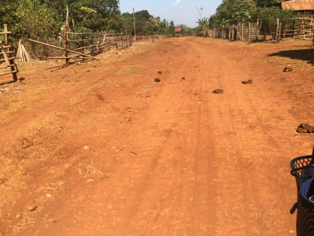 Sur la route, j’ai tenté d’aller à une autre cascade avant Tad Vang Yang mais il y avait 10 km de piste comme ça aller et autant au retour parce qu’on ne pouvait pas rejoindre une autre route au bout. J’ai renoncé au bout de 2 km (donc 4 km en tout !) tellement la route était pourrie, sans compter les camions, voitures et motos qui passaient et faisaient voler la poussière…Je n’ai pas pris la photo à un de ces moments-là, sinon vous n’auriez rien vu 😜.