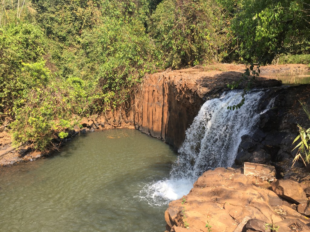 En cherchant bien sur la carte, on trouve une cascade, pas trop loin car je dois être en fin d’après-midi à Paksé, pour retrouver le beau-frère de William qui a un minivan et qui doit m’emmener à la frontière pour récupérer les chiros et les dentistes de la mission.