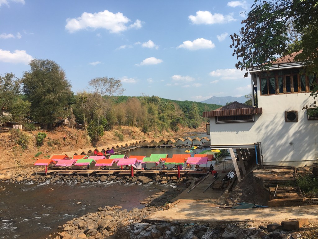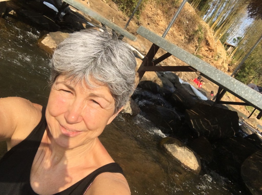 L’endroit est charmant, nous sommes les premiers et du coup, c’est tranquille. Il y a bien leurs éternelles énormes enceintes qui diffusent de la musique mais ce n’est pas trop fort pour l’instant. J’avoue que je préfère la musique de l’eau qui coule sur les rochers 😇.