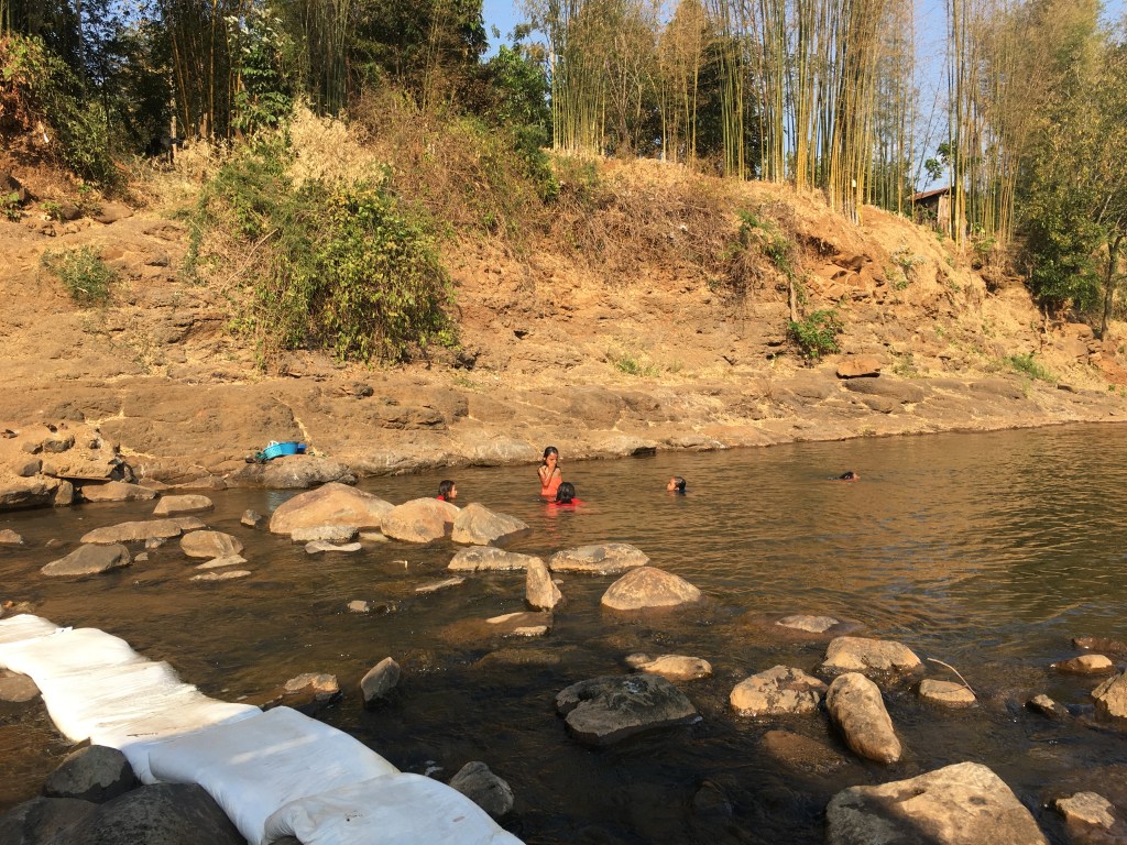 Laurent : « Il n’y a vraiment pas beaucoup d’eau… » Phonesavanh : « Oui, il faudra revenir à la saison des pluies… »