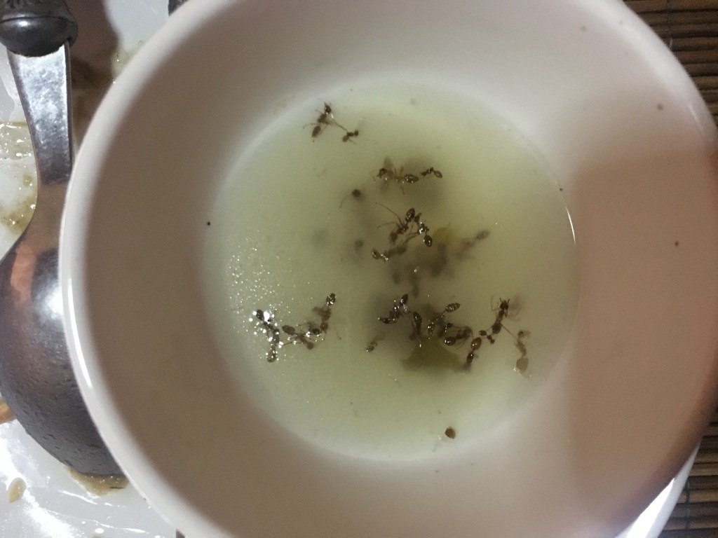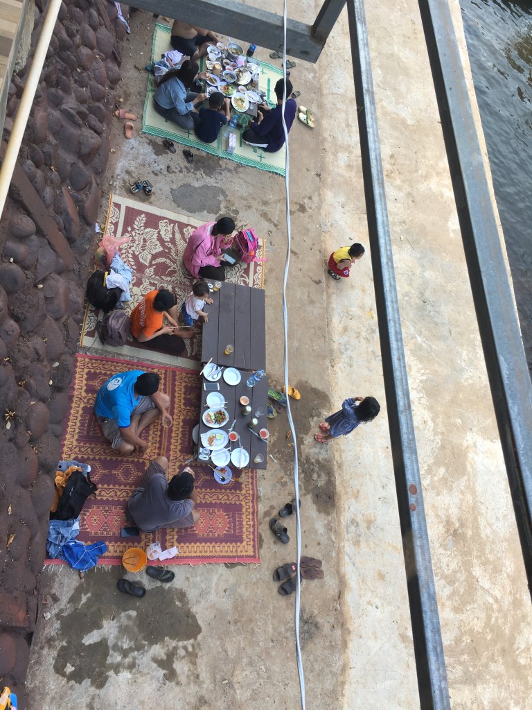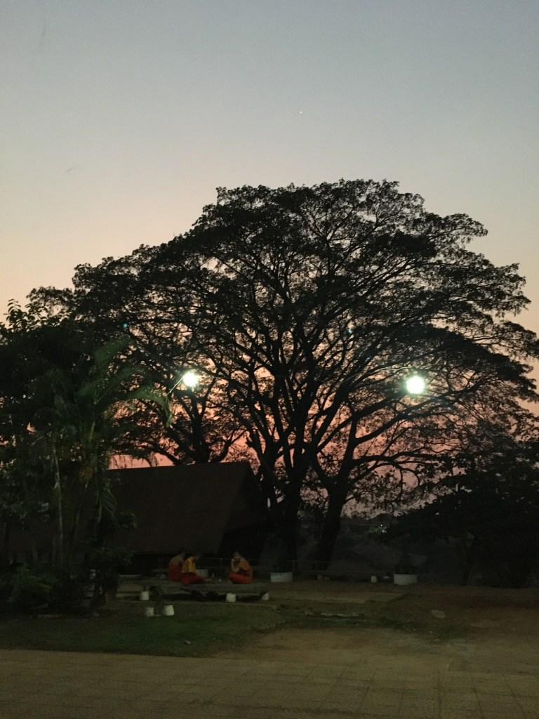 Pour le repas, c’est typiquement lao, je n’ai pas retenu le nom de tous les plats, je mange une sorte de cake plutôt épicé, des légumes à la vapeur, du sticky rice, des pousses de bambous et une délicieuse soupe au poulet et fourmis…si, si, il paraît que l’acide formique est très bon pour la santé. Ce sont des fourmis rouges qui vivent dans certains arbres et qu’ils vont chercher la nuit 🤔.