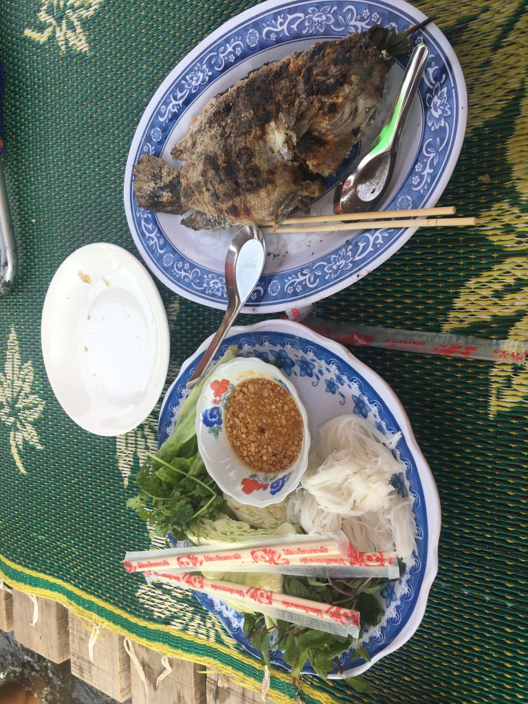 Au bout d’un moment, Phonesavanh me demande si j’ai aimé le poisson que j’avais mangé hier, je lui avais raconté ma journée de samedi, et je lui dis que oui…grave erreur, je n’ai pas fait gaffe mais elle est partie en acheter, ça faisait à peine une heure que j’avais mangé le poulet 😬, elle me gave comme une oie 😩.