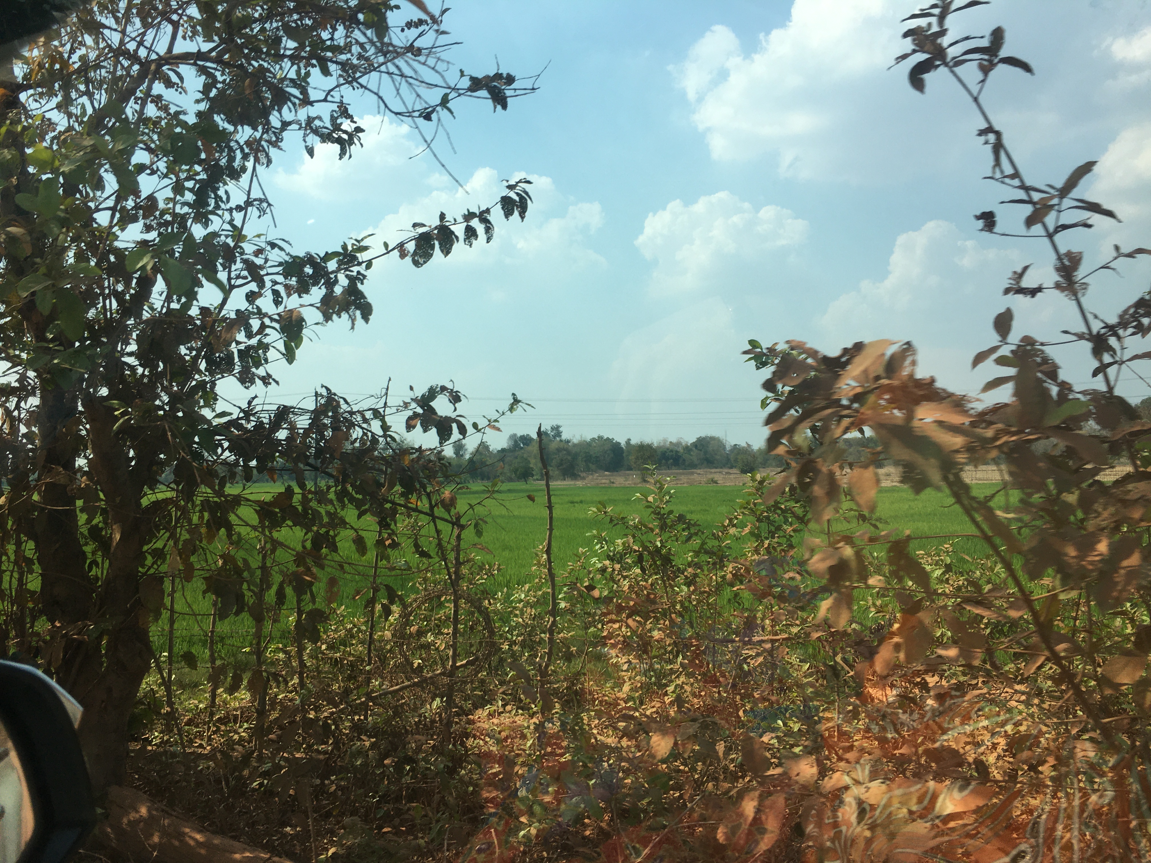 Ils ne m’emmènent pas très loin de Paksé et heureusement, parce que si Konthong roule à 40 km/h sur la 4 voies, voire moins, il est carrément à 10 km/h sur la piste qui nous mène à notre destination finale, bref 45 minutes pour 12 km 😤.