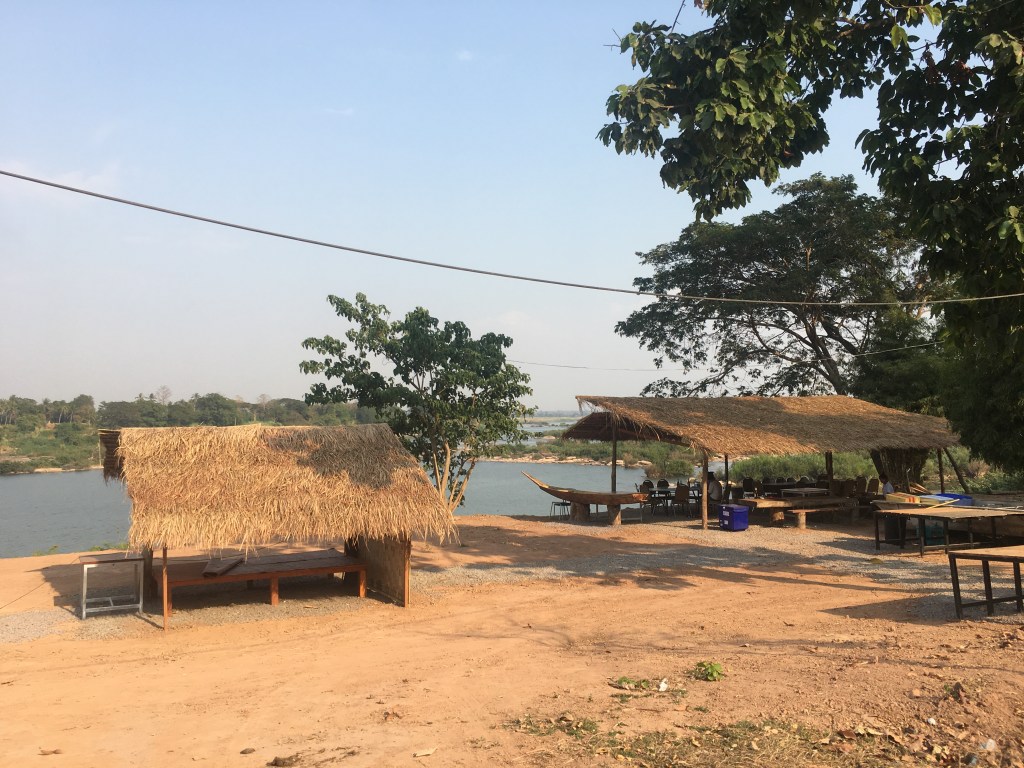 Petite pause repas, Phonesavahn a acheté du poulet grillé au marché et cuisiné du riz que nous mangeons dans un petit restaurant au bord du Mékong auquel nous avons acheté des légumes sautés pour compléter notre repas. Konthong nous explique qu’il fait pousser des salades et nous montre les photos de son système d’irrigation dans le jardin. Il nous dit que son rêve serait d’avoir un bout de terre pour cultiver un potager, en plus de son boulot de prof de Lao. La famille de Phonesavanh en a un puisque c’était des cultivateurs mais c’est beaucoup trop loin de Paksé pour faire ça le soir après le boulot…. Laurent et lui échangent bien et le tout dans un anglais approximatif pour Konthong, mais, avec les mains, google translation et google images, on arrive maintenant à des conversations qui ressemblent à quelque chose 😜. Laurent propose de lui envoyer des graines de salades susceptibles de pousser ici, c’est à dire dans un climat chaud et humide, et qui peuvent donner des graines qu’on peut re-semer parce qu’apparemment ici, ils n’ont que des hybrides dont on ne peut pas utiliser les graines parce qu’elles sont stériles 🤔😩.