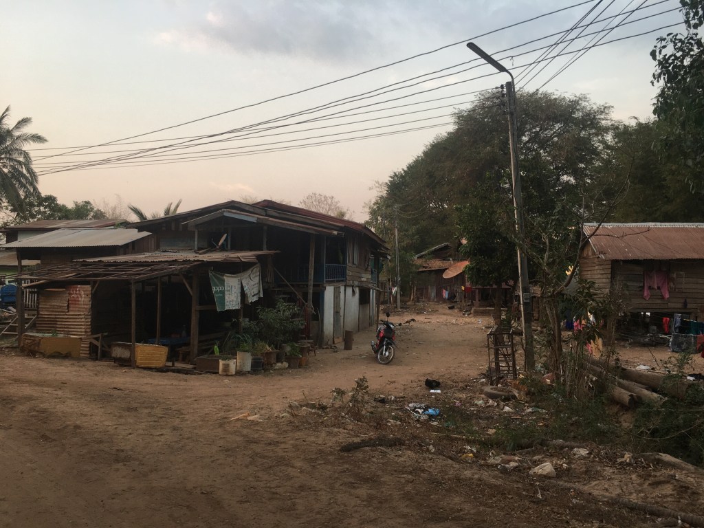 Alors pour compenser, je suis allée me balader au bord du Mékong, j’ai pu voir un quartier que je ne connaissais pas, les gens y vivent très pauvrement et ont dû prendre de plein fouet la crue de septembre. C’était visiblement l’heure de l’apéro, il y a fait des groupes de vieux (pas de femmes) toutes les 2 ou 3 maisons, assis autour d’une table à siroter de la bière ou un alcool chelou dans une bouteille d’eau avec des bêtes à l’intérieur, je n’ai pas osé les prendre en photo…