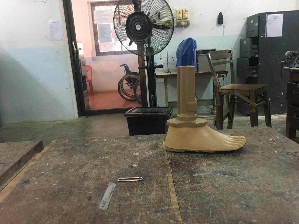 Un pied, pour une jambe artificielle, en cours de fabrication.