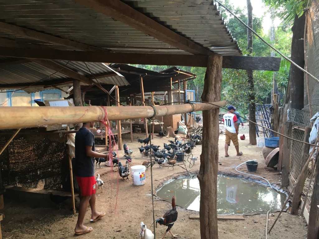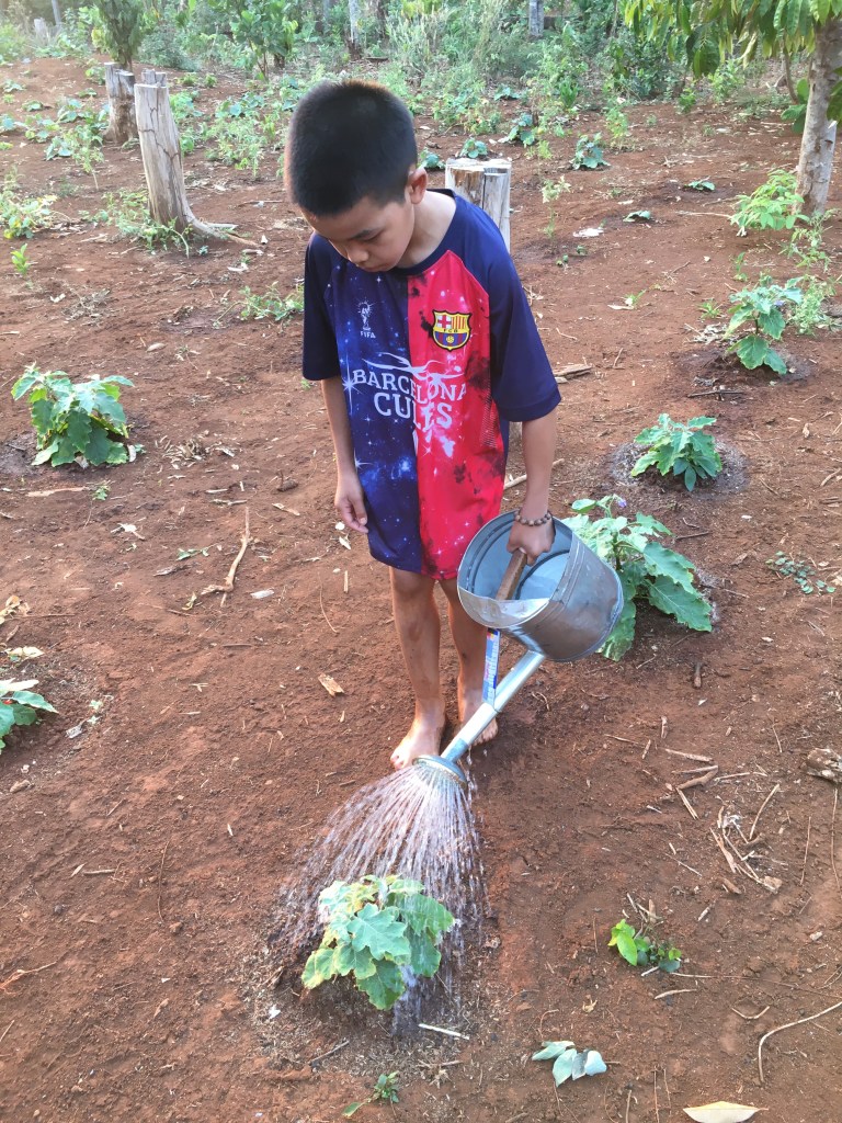Puis Sina passe nous prendre pour nous emmener voir deux soeurs de la Charité qui ont une maison à 30 km de Paksé. Elles hébergent 6 orphelins qui vont à l’école juste en face. En échange, les enfant participent à la vie de la propriété, ils arrosent les plantes, récoltent les fruits et les légumes, nourrissent les animaux…Elles vivent quasiment en autarcie, le surplus de production, elles le troquent aux villageois contre ce qui peut leur manquer (boeuf, produits ménagers, miel…) et s’il y en a vraiment trop, les villageois emmènent le surplus à Paksé pour le vendre et ils partagent les gains avec les soeurs, j’aime bien le concept 😃.