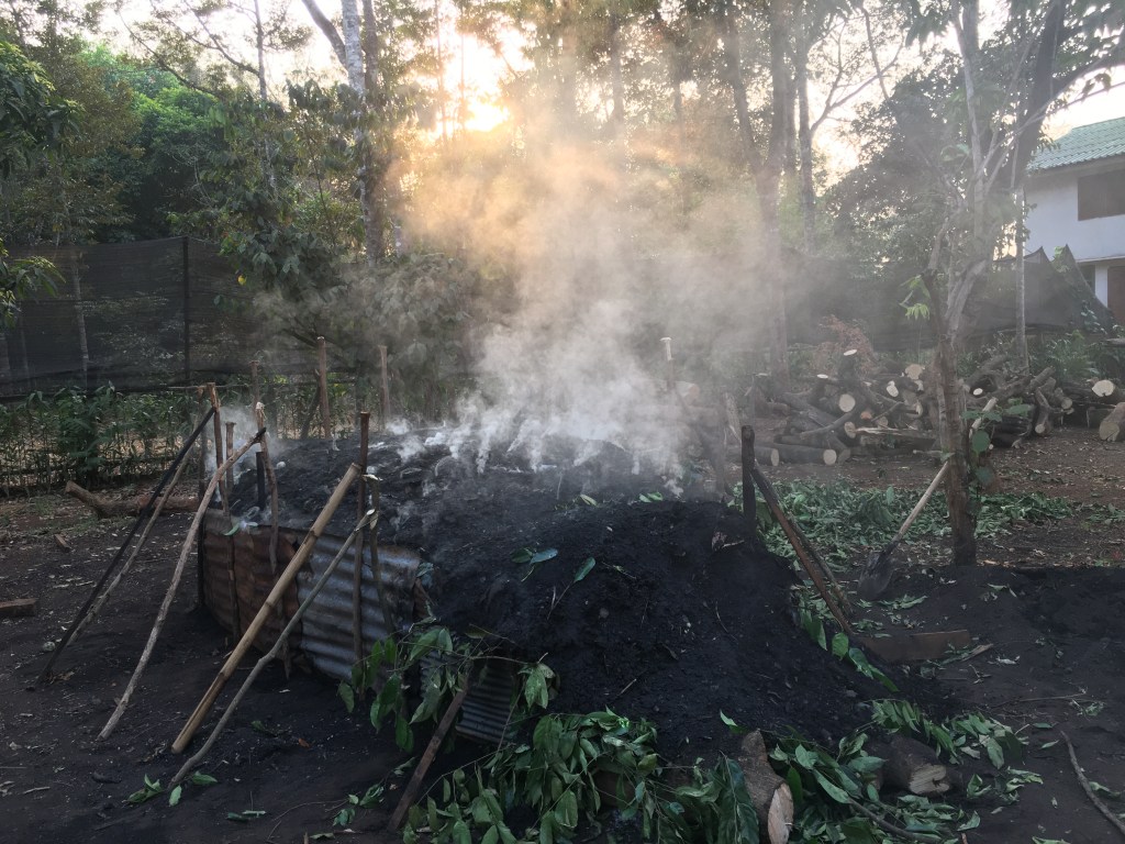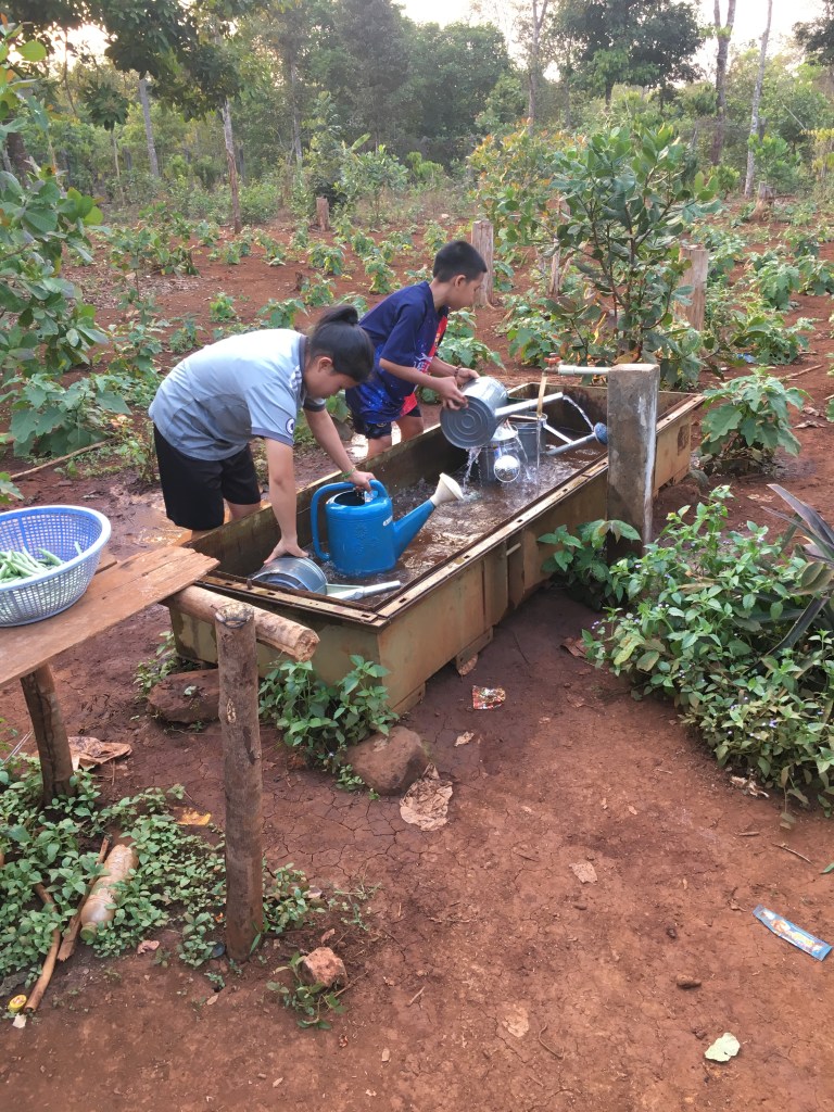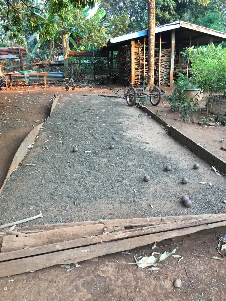 Une partie du jardin.La cloche de l’église.Un nouveau bâtiment, les soeurs vont accueillir 8 filles en plus des 6 garçons. Ils sont 3 vietnamiens à construire la maison, ça leur prend 3 mois, Ça va être un bâtiment simple, 2 chambres pour chacune des soeurs avec salle de bain (leur maison actuelle prend l’eau), un dortoir pour les filles et une grande salle de bain.Les piments qui sèchent.La salle à manger.La cuisine.Le poulailler.Le terrain de sport…L’église, à gauche du clocher, il commençait à faire nuit 😬.Derrière la fumée, le chauffeur qui vient à l’instant de démarrer son engin à la manivelle…Le voilà 😅, une fois le gaz carbonique disparu 🤢.Elles font leur propre charbon.La salle de bain à gauche, le placard à balai à droite.L’arrivée d’eau, le réservoir est de bonne taille !