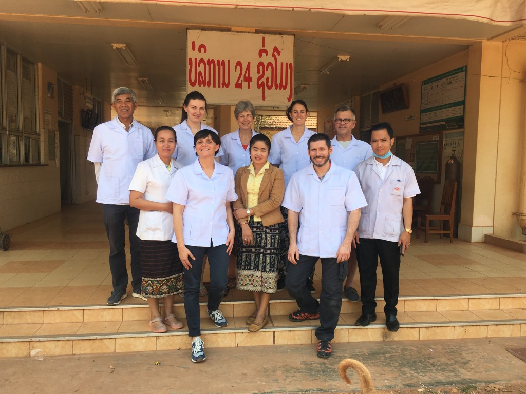 La fine équipe, avec en plus Sina (en haut à gauche), l’infirmière-chef de l’hôpital (en bas à gauche), une des « sisters » du département (au milieu) et un médecin (en bas à gauche).