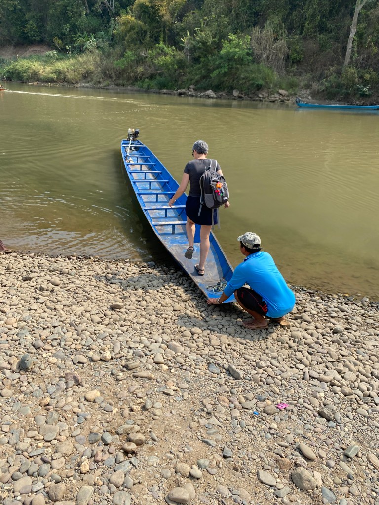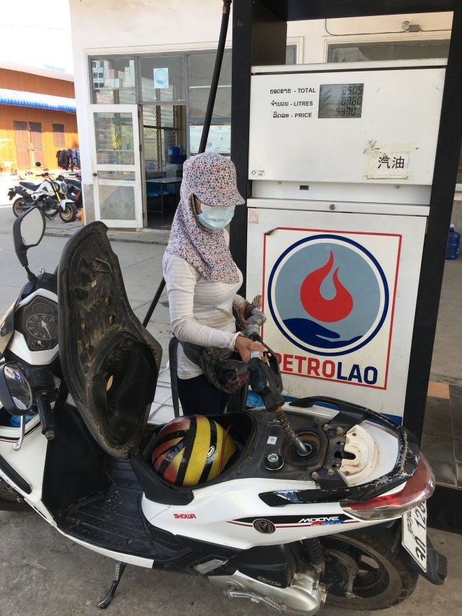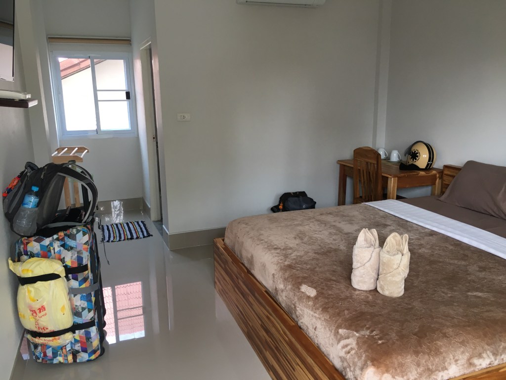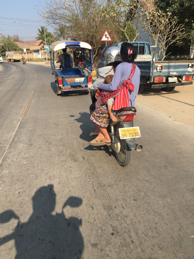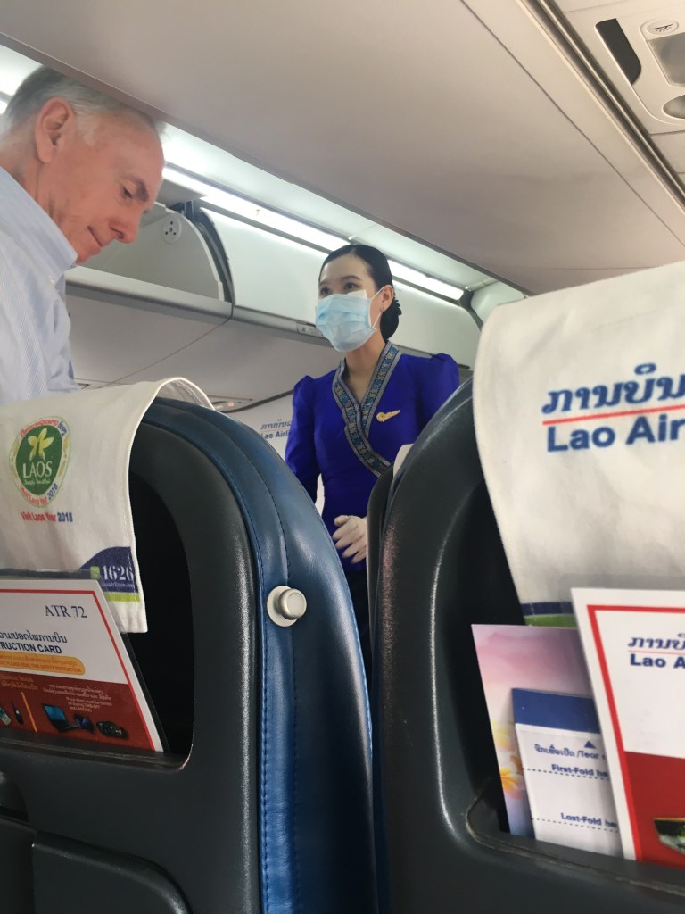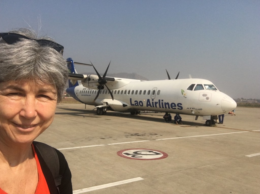 Ce matin Laurent part pour un trek dans le Triangle d’Or pour plusieurs jours et moi je fais mon dernier voyage avant de me poser, enfin, pour presque 4 semaines à Paksé. Mes bagages sont presque prêts, ma valise devient de plus en plus dure à fermer, pourtant je me suis limitée dans mes achats 😜, seul mon casque ne rentre pas, je le porterai à la main. Arrivée à l’enregistrement, l’employé me fait remarquer que je dépasse largement les 20 kg autorisés. Je lui dit que j’ai voyagé avec leur compagnie il y a 4 jours et qu’à ce moment-là le poids de ma valise n’a pas posé de problème mais je vois bien que ça ne lui suffit pas. Je lui explique alors que je viens pour une mission humanitaire à Paksé et que j’ai essentiellement du matériel médical dans ma valise. Il me dit qu’il doit en référer à son supérieur et disparaît un bon moment. Quand il revient, il me demande si j’ai une preuve de ce que j’avance, je sors alors mon ordinateur et lui montre la lettre officielle que William m’avait faite parvenir et que bien sûr je n’avais pas pensé à imprimer 😤. Il y jette un vague coup d’oeil, je suis sûre qu’il n’a rien lu, mais il a bien vu qu’il y avait ma photo sur le document avec le mot « mission » et ça lui a suffit ! Me voici autorisée à partir 😅.