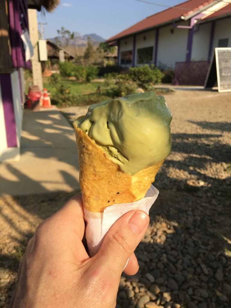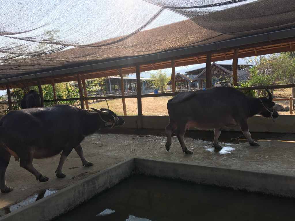 Pour ma part, c’est surtout une bonne façon de faire de l’argent avec les touristes qui viennent visiter la laiterie et acheter leurs produits. Je ne suis pas sûre qu’il y ait beaucoup de laotiens pouvant se permettre d’acheter ce qu’ils proposent à la vente. Je n’ai pas payé pour visiter la laiterie, je me suis contentée de me balader dans la ferme, ce qui était gratuit, du moins je l’ai supposé. J’ai quand même craqué pour leur glace qui était très bonne 😋. Mais franchement, certains animaux ont des maisons plus belles et plus solides que celles de certains villageois que j’ai vues en chemin…