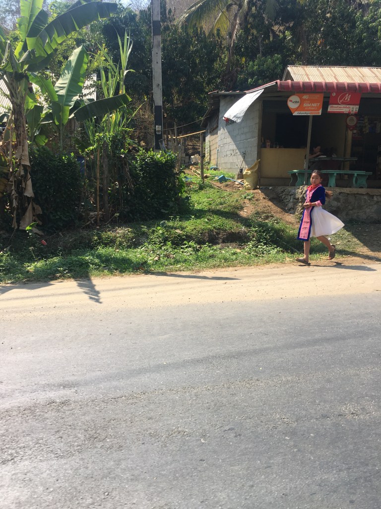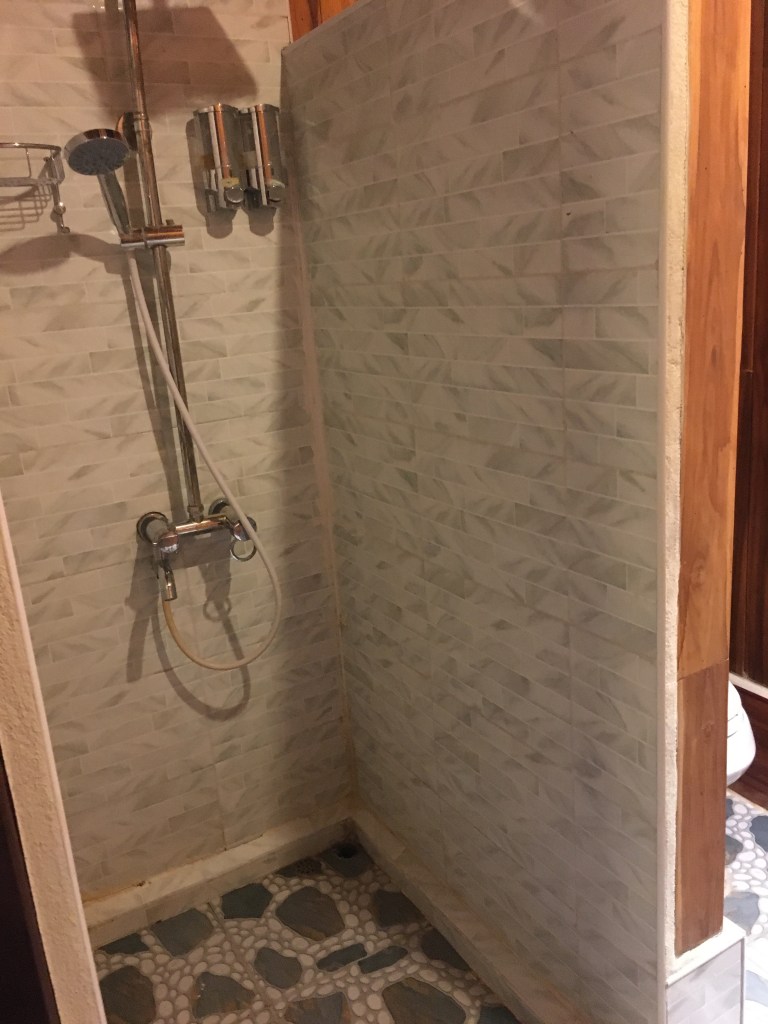 Nous voilà partis à la recherche du Tiger Trail, qui n’est pas indiqué sur toutes les cartes et dont on ne sait pas très bien où il commence…On arrive dans un petit village, point de départ supposé. On commence par manger, il n’y a pas vraiment beaucoup de choix, soit une soupe aux pattes de poulet qui ne nous inspire pas vraiment dans une gargotte, soit une soupe classique, dans une sorte de « Carrefour Market/restaurant », qui nous convient mieux.