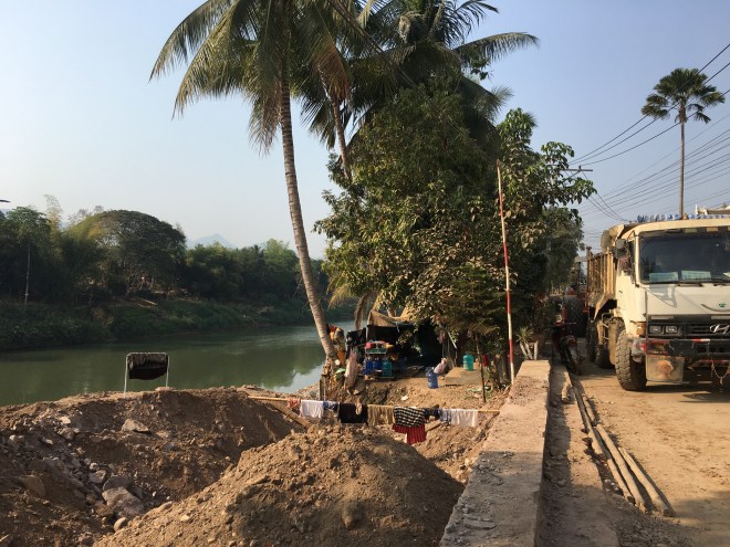 Il y a pas mal de travaux sur cette rive du Mékong pour essayer de pallier aux crues lors de la saison des pluies.