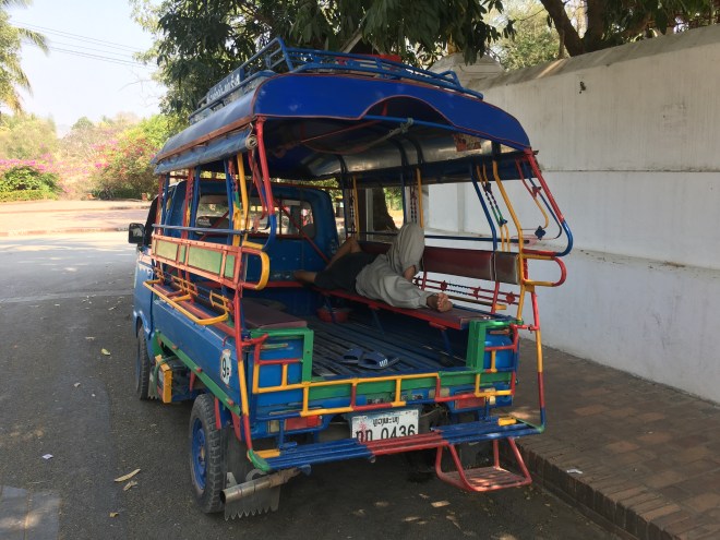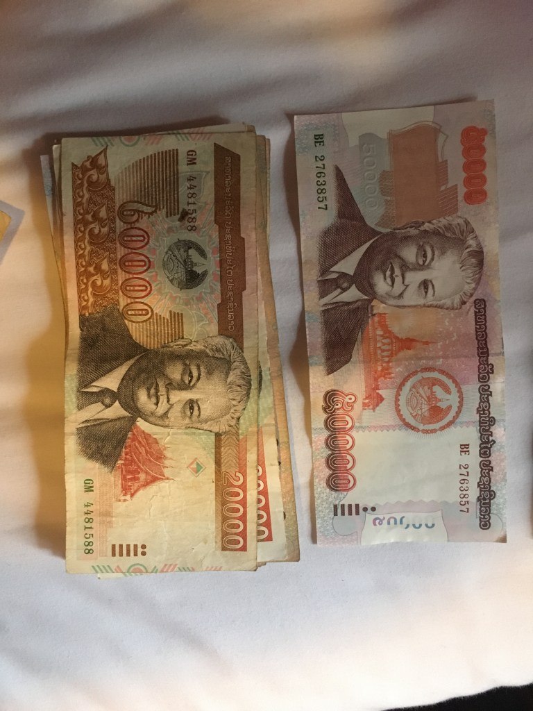 L’arrivée se passe très rapidement, je n’ai jamais passé la douane aussi vite. Il faut dire que c’est la première fois que j’arrive au Laos en avion, qu’il y avait un nombre restreint de passagers (petit avion) et qu’en plus j’avais déjà mon visa. Ma valise est arrivée sur le tapis pendant ce temps, quelle efficacité ! Je récupère une nouvelle carte Sim, je change de l’argent et me voici en route pour ma nouvelle guesthouse.