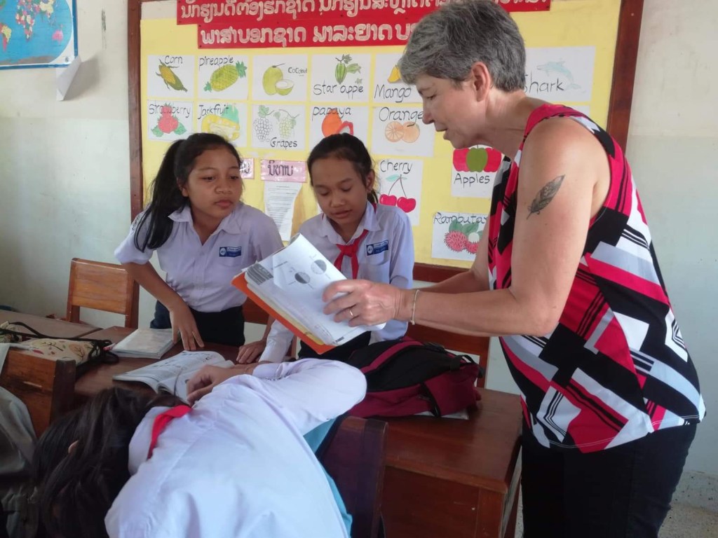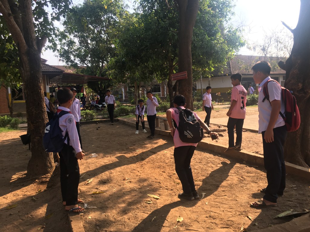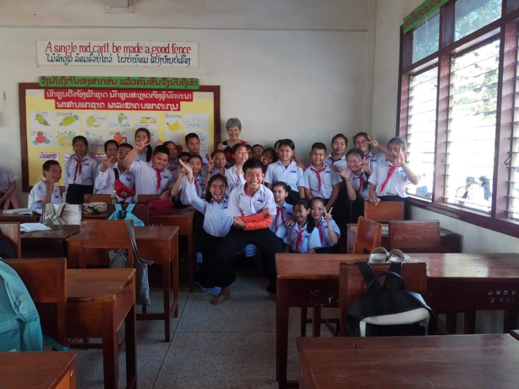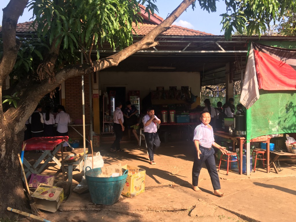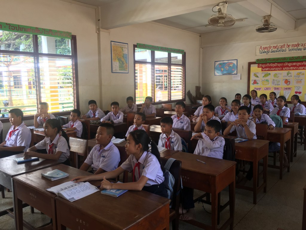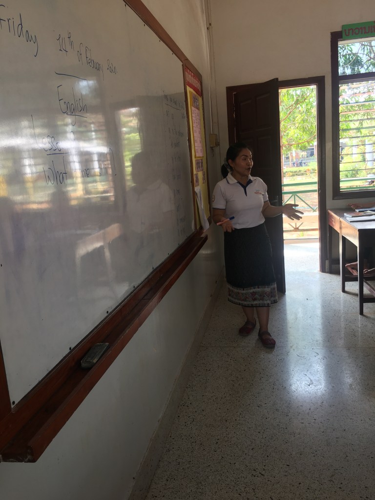 En début d’après-midi, je retrouve Phonesavanh à l’école, elle a une heure de cours avec des élèves de 4ème et voulait que je vienne, et j’avoue que ça me faisait plaisir aussi ! J’en ai profité pour aller voir aussi l’équipe de la direction de l’école, ils étaient contents de me revoir et c’était réciproque. On était resté en contact pendant l’année via Facebook, les réseaux sociaux ont du bon dans ce cas-là. Je leur avais amenées des choses qu’ils ne pouvaient pas avoir ici et qu’ils m’avaient demandées.