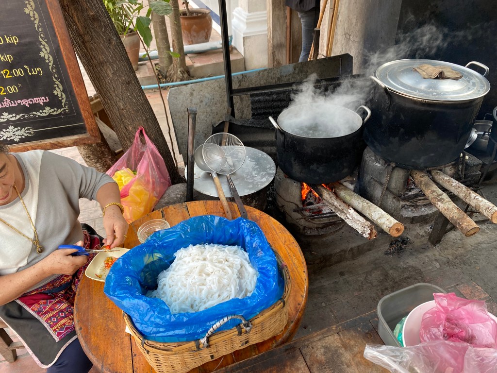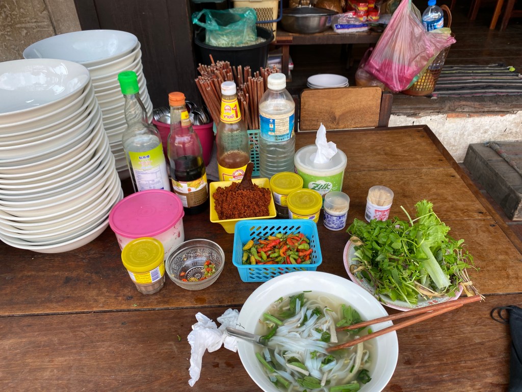 Je pars chercher le scooter que j’ai réservé hier soir, je vais prendre un solide petit déjeuner et en route pour la cascade de Kuang Si.