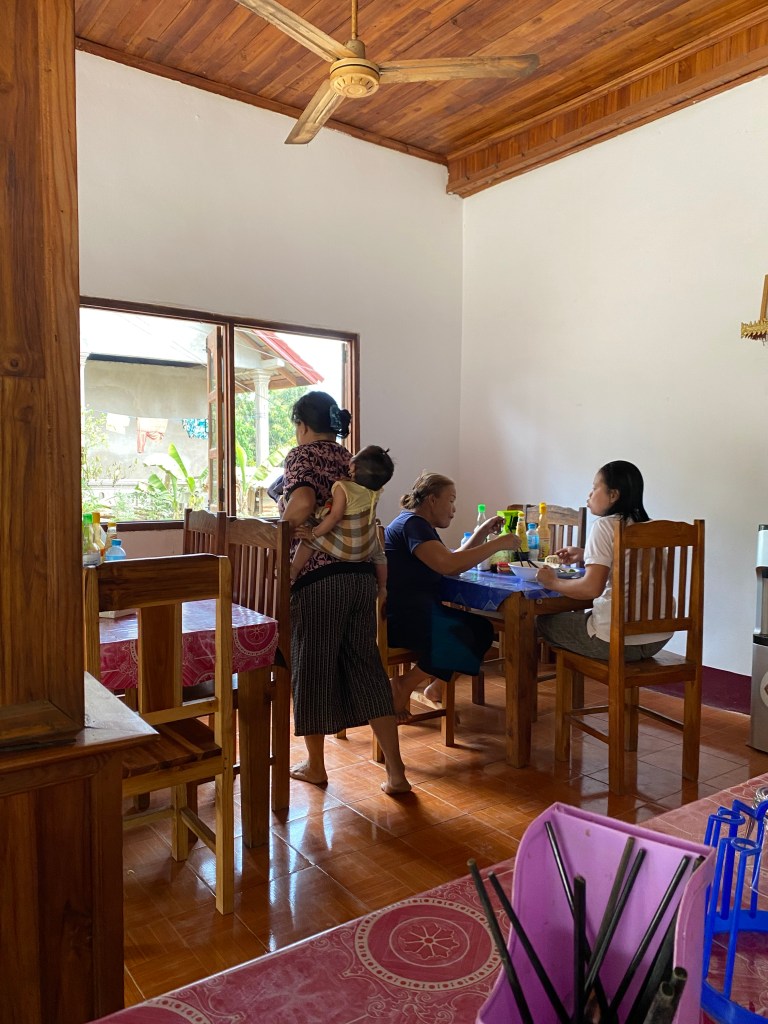 à gauche un billet de 20000 kips, à droite, un de 50000 kips ça va être facile avec ça, tiens…😤 Ce qui est rigolo, c’est qu’avec environ 100 €, tu es millionnaire en kips 🤩partie de badminton dans la rue à côté de la guesthousema loueuse de scooteret sa fille qui attend que sa mère ait fini de travailler10000 kips = 1 euro, je vous laisse faire la conversion 😉 vous comprendrez que je ne me prive pas trop 😇