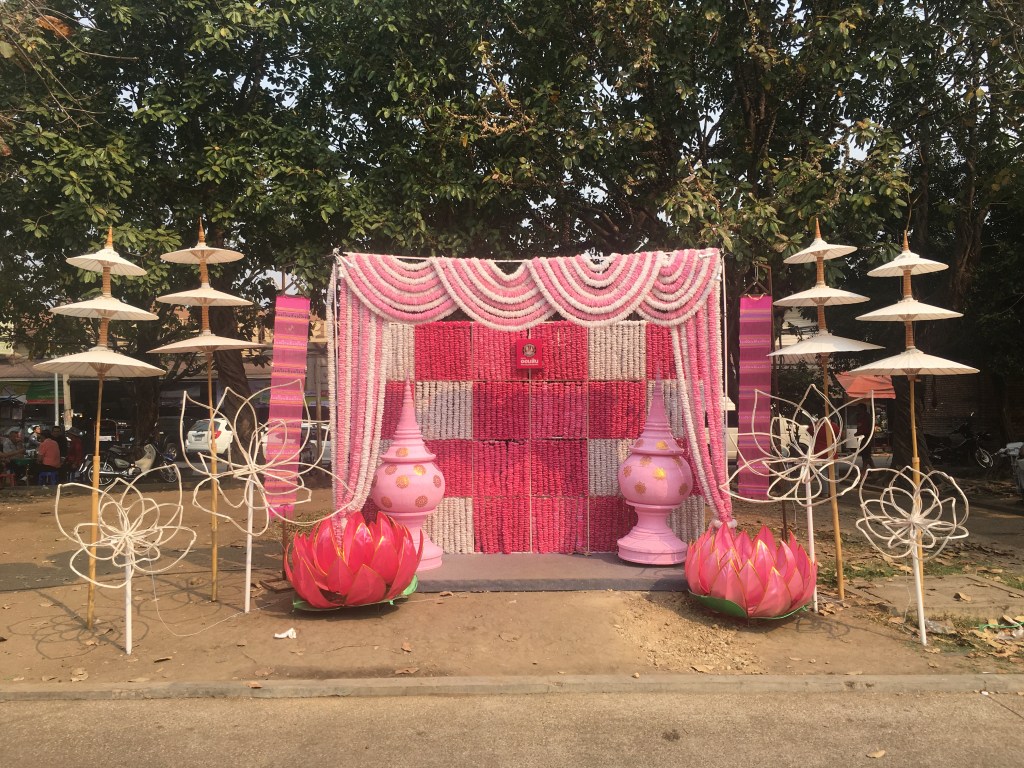 C’est la fête des fleurs durant tout le week-end. Il y a eu un énorme défilé le samedi que je n’ai pas vu mais Ifti m’a montrée des photos des préparatifs, c’est très « Miss » sur des chars fleuris, bref tout ce que j’aime 😅. Je vous mets quelques exemples de ce qu’on pouvait voir aux entrées de la vieille ville.