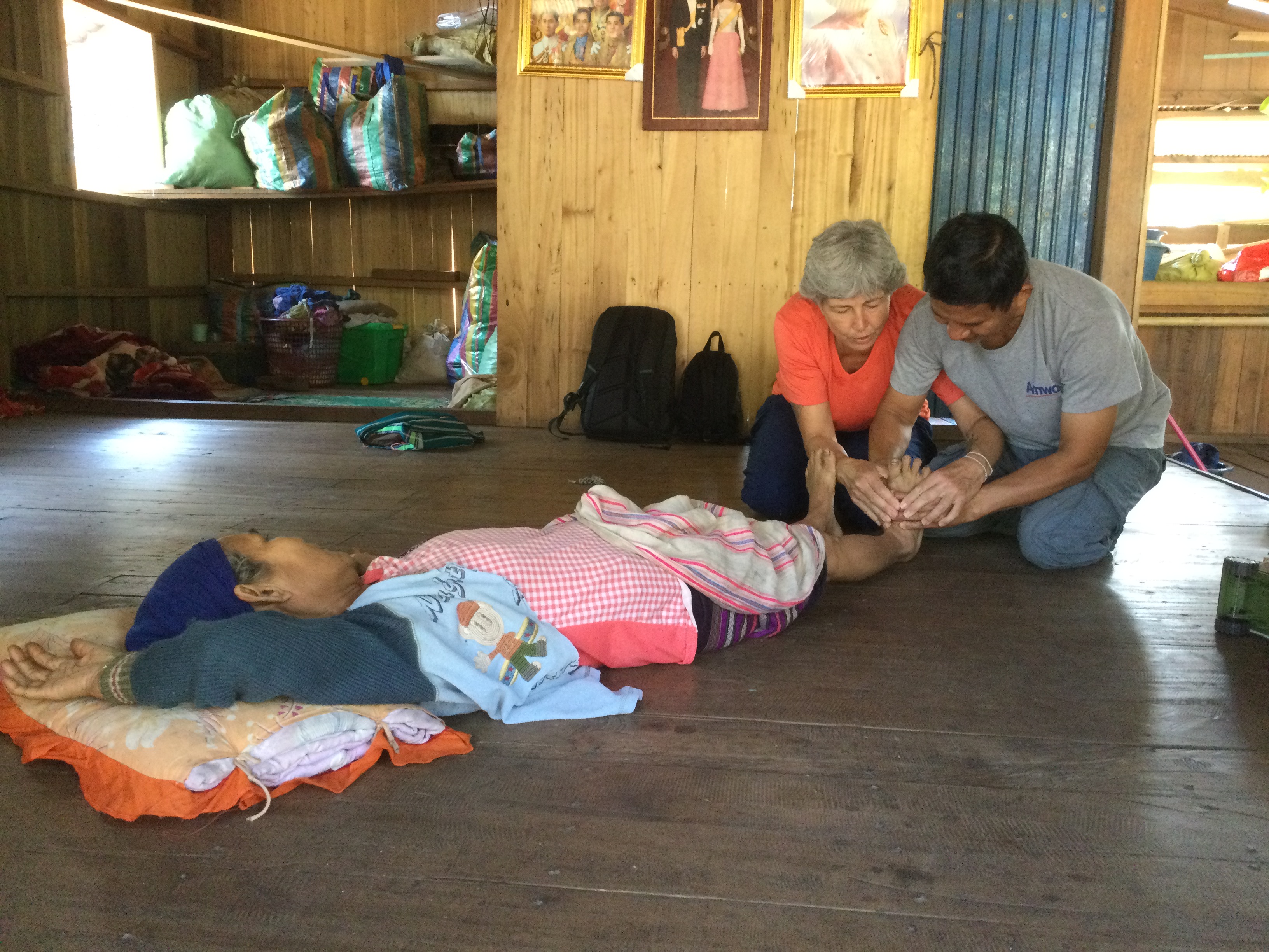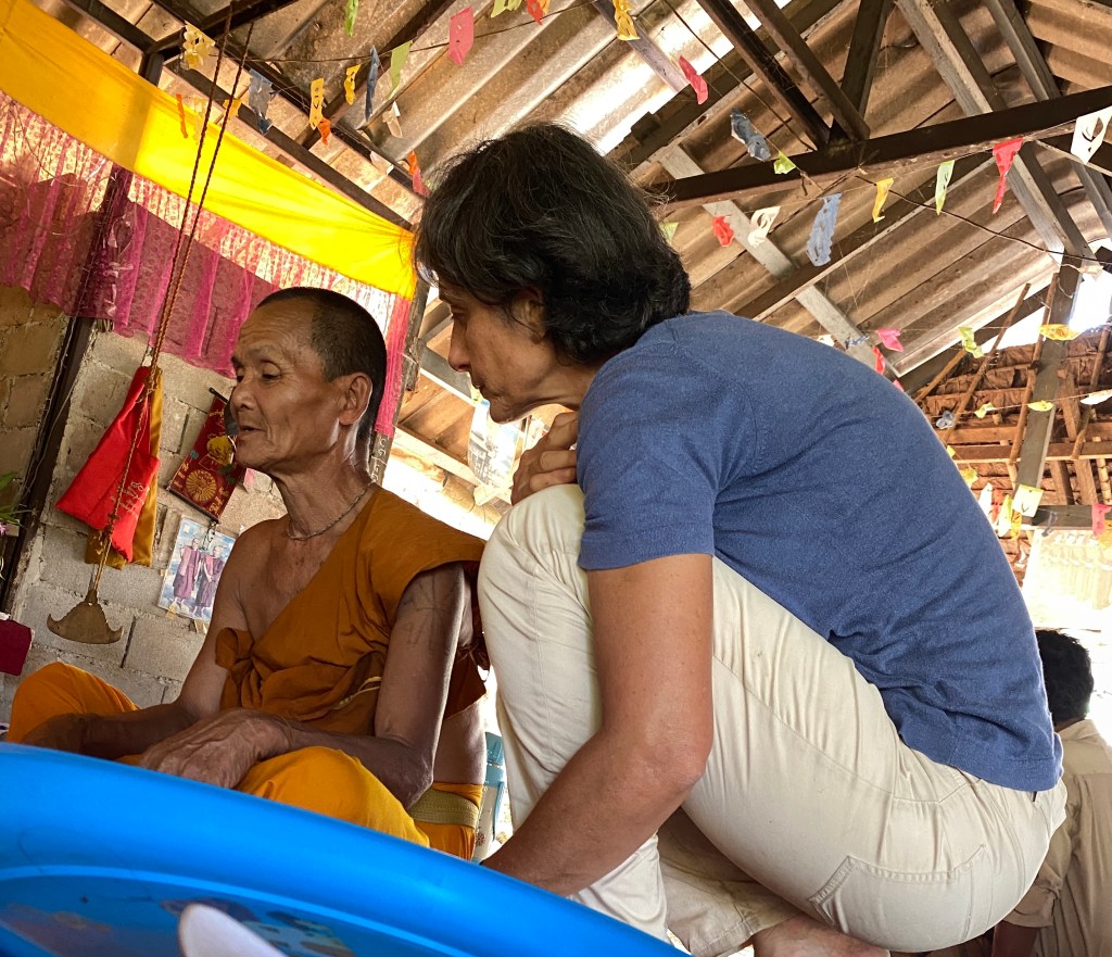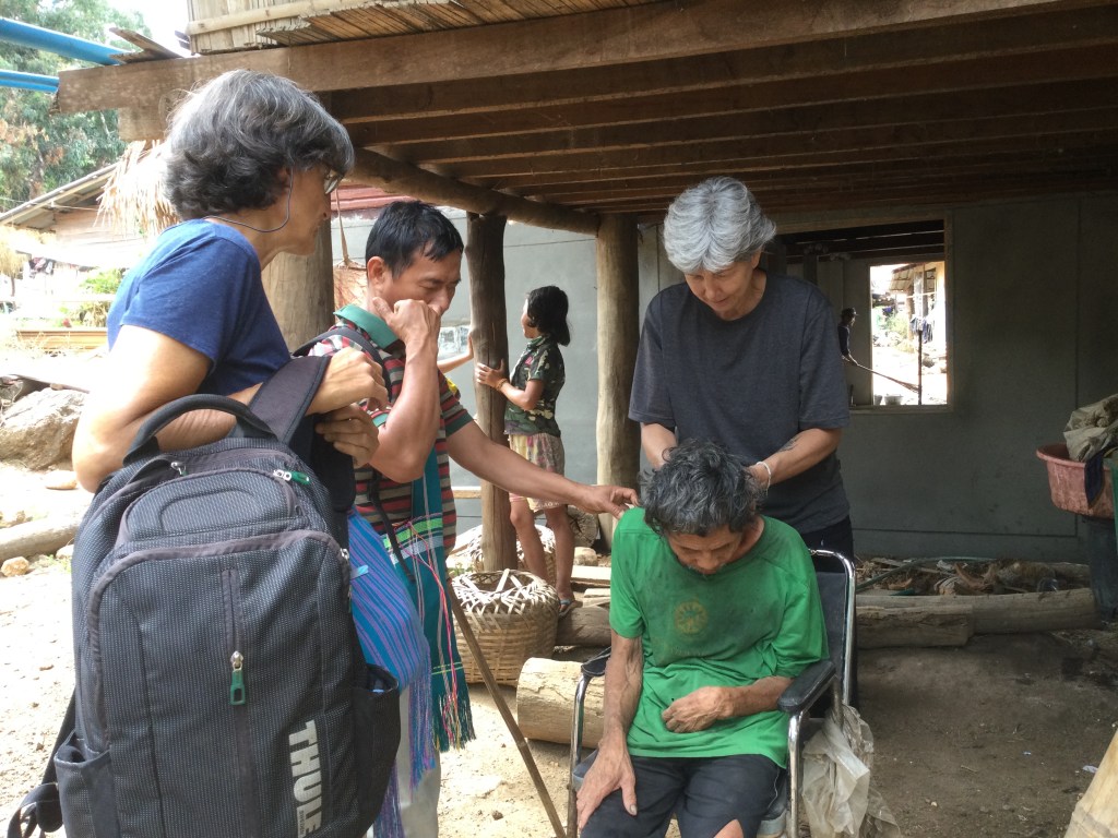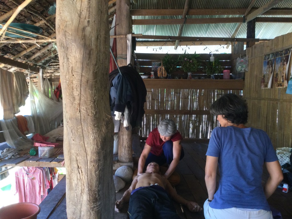 Il pleut sans discontinuer toute la matinée donc la virée que je pensais faire dans la montagne tombe à l’eau… Il faut aussi qu’on s’organise pour que je puisse aller à Mae Vé, dans le village où il y a l’autre centre du père Alain et où on m’attend à partir de lundi pour soigner les villageois qui le voudront bien. Il faut aussi que je trouve un moyen d’en repartir jeudi soir ou vendredi matin tôt pour être à Mae Sot, à quatre heures de route, j’ai mon avion pour Bangkok à midi et demi.