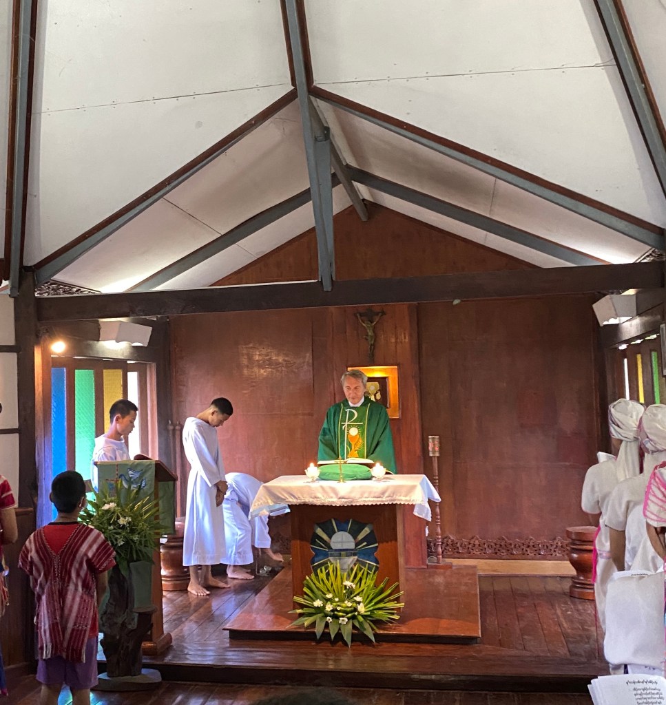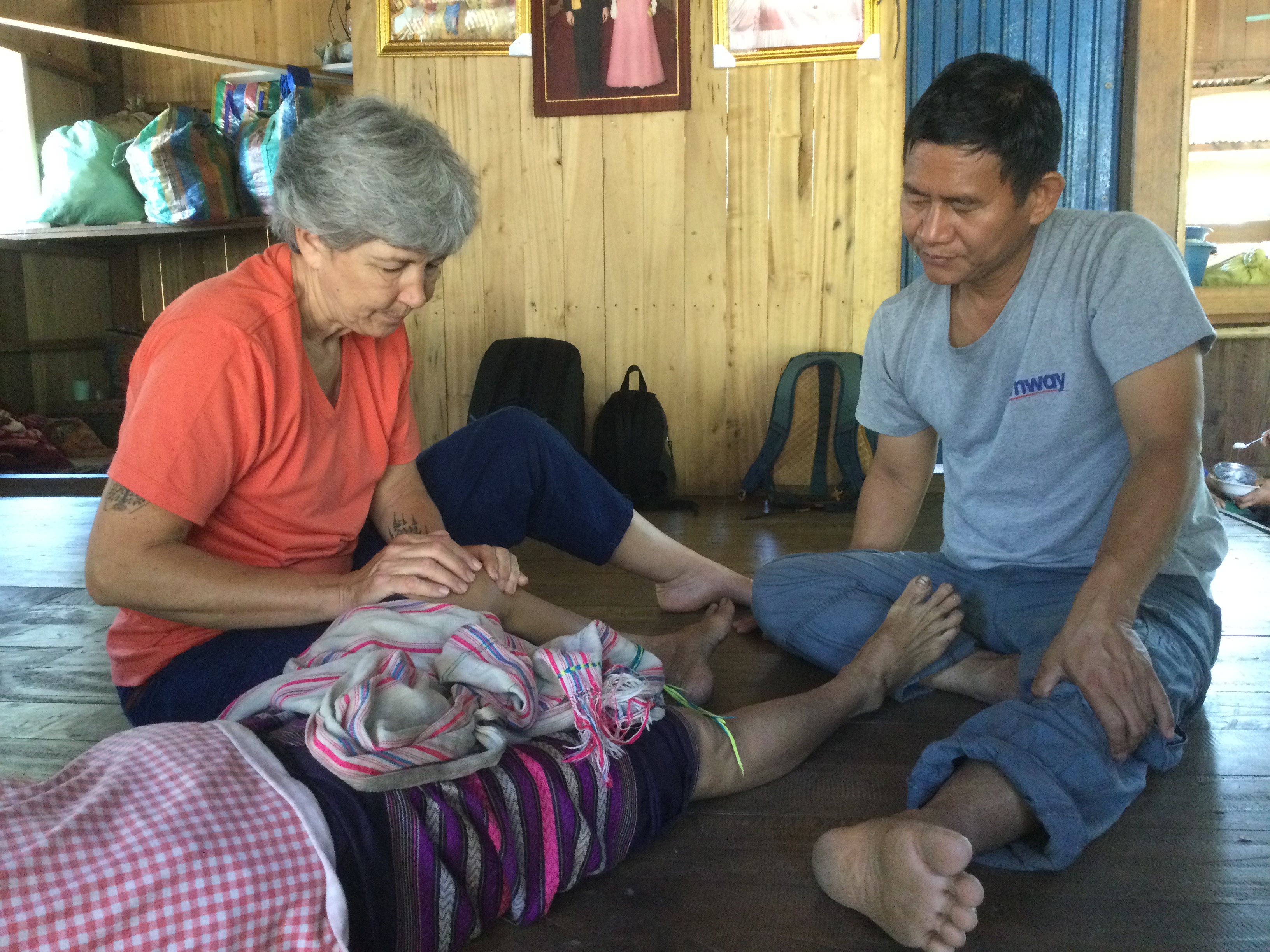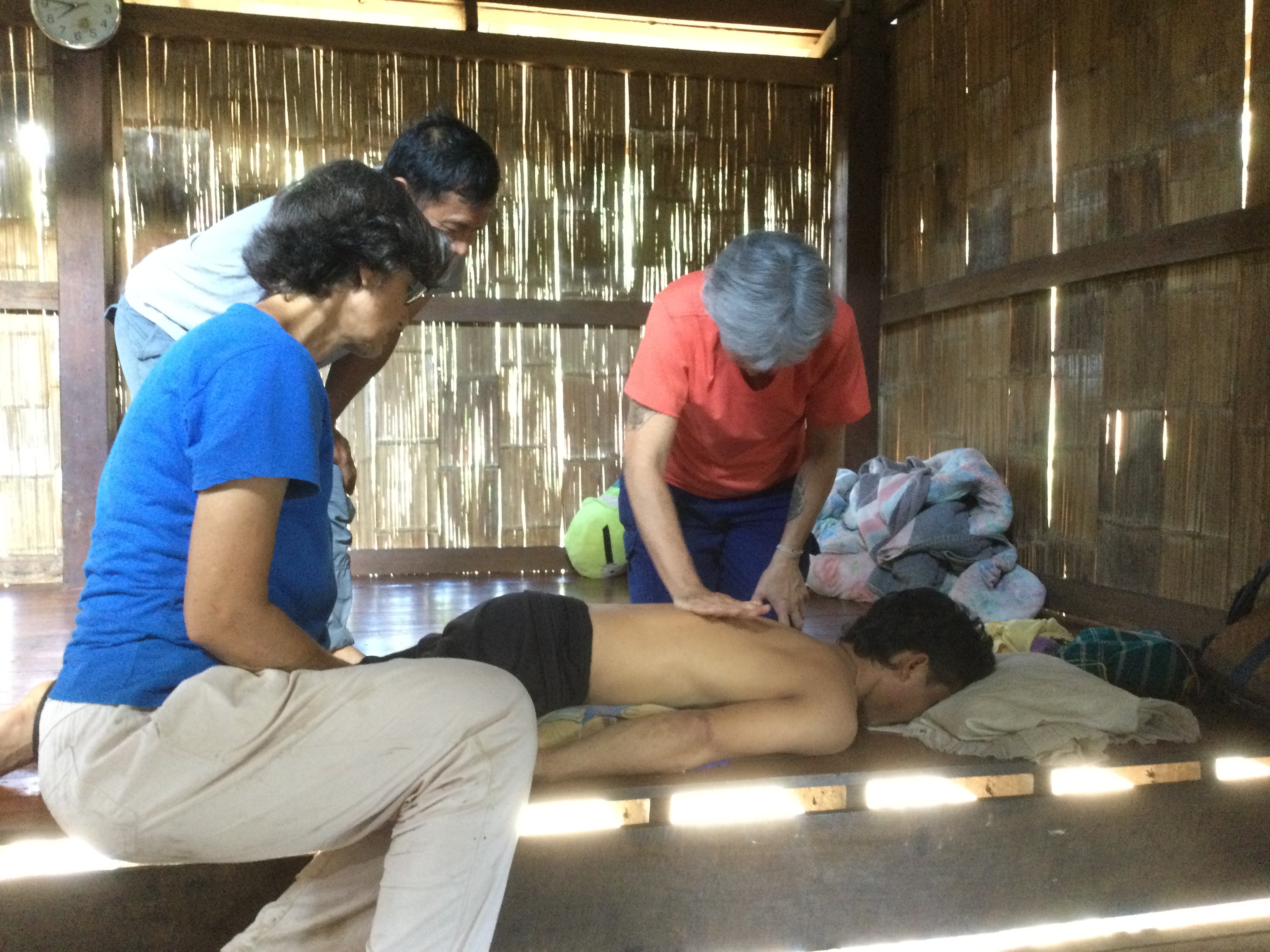 Il pleut sans discontinuer toute la matinée donc la virée que je pensais faire dans la montagne tombe à l’eau… Il faut aussi qu’on s’organise pour que je puisse aller à Mae Vé, dans le village où il y a l’autre centre du père Alain et où on m’attend à partir de lundi pour soigner les villageois qui le voudront bien. Il faut aussi que je trouve un moyen d’en repartir jeudi soir ou vendredi matin tôt pour être à Mae Sot, à quatre heures de route, j’ai mon avion pour Bangkok à midi et demi.