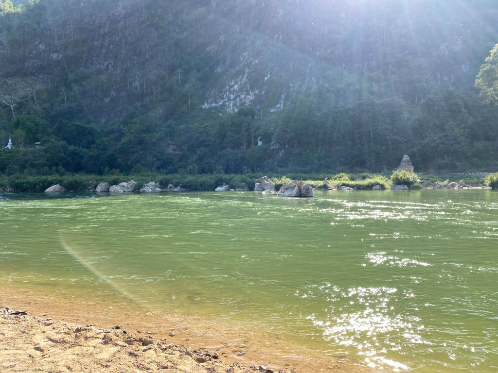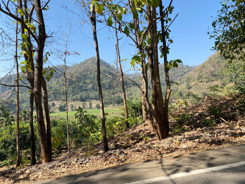 Le trajet prendra deux heures, il y a beaucoup d’arrêts sur la route, les gens montent et descendent et il y a au moins trois contrôles de policiers pour les papiers d’identité… pas de doute, on est très proche de Myanmar.