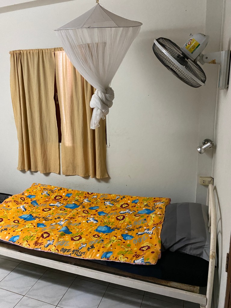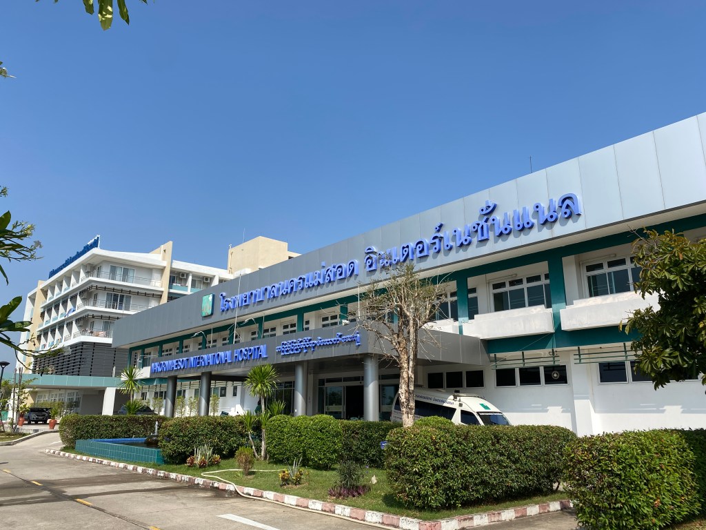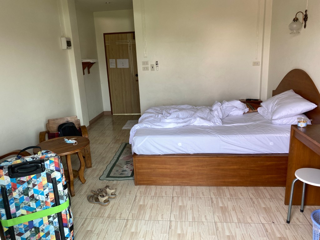 Arrivée à Mae Sot, je passe à mon hôtel pour déposer mes bagages avant de me rendre à l’hôpital. Il n’est pas terrible mais vu que je l’ai pris au dernier moment et que je ne sais pas encore ce qui va se passer une fois que j’aurai fait mon test, j’ai préféré en prendre un pas cher avec un balcon, ben j’aurai pas dû…