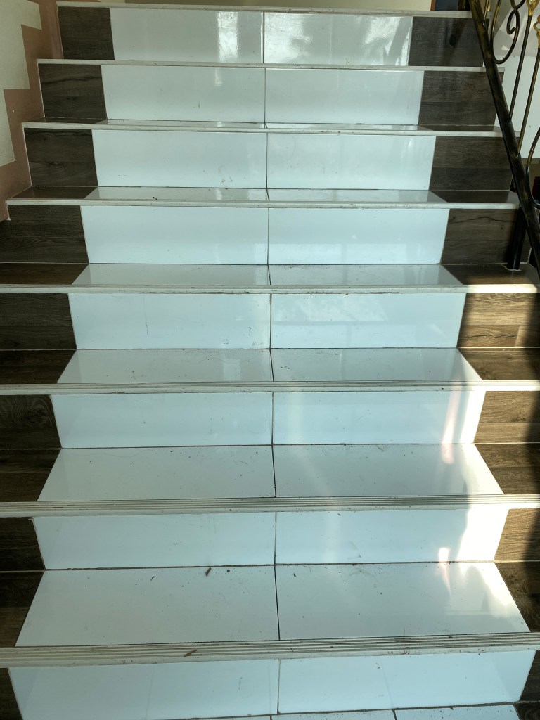 Je ne suis pas difficile mais là, c’est franchement sale dans les escaliers qui mènent à la chambre, l’autel est visiblement dédié à la déesse du maquillage (bon, c’est vrai que ça n’a pas d’importance mais quand même…), les coussins sur le lit sont tout tachés, les draps sont en fin de vie (mais propres 😅) et le balcon donne sur des réservoirs à eau, déprimant… et demain, le petit déjeuner, inclus dans le prix, ne sera vraiment pas bon 😩.