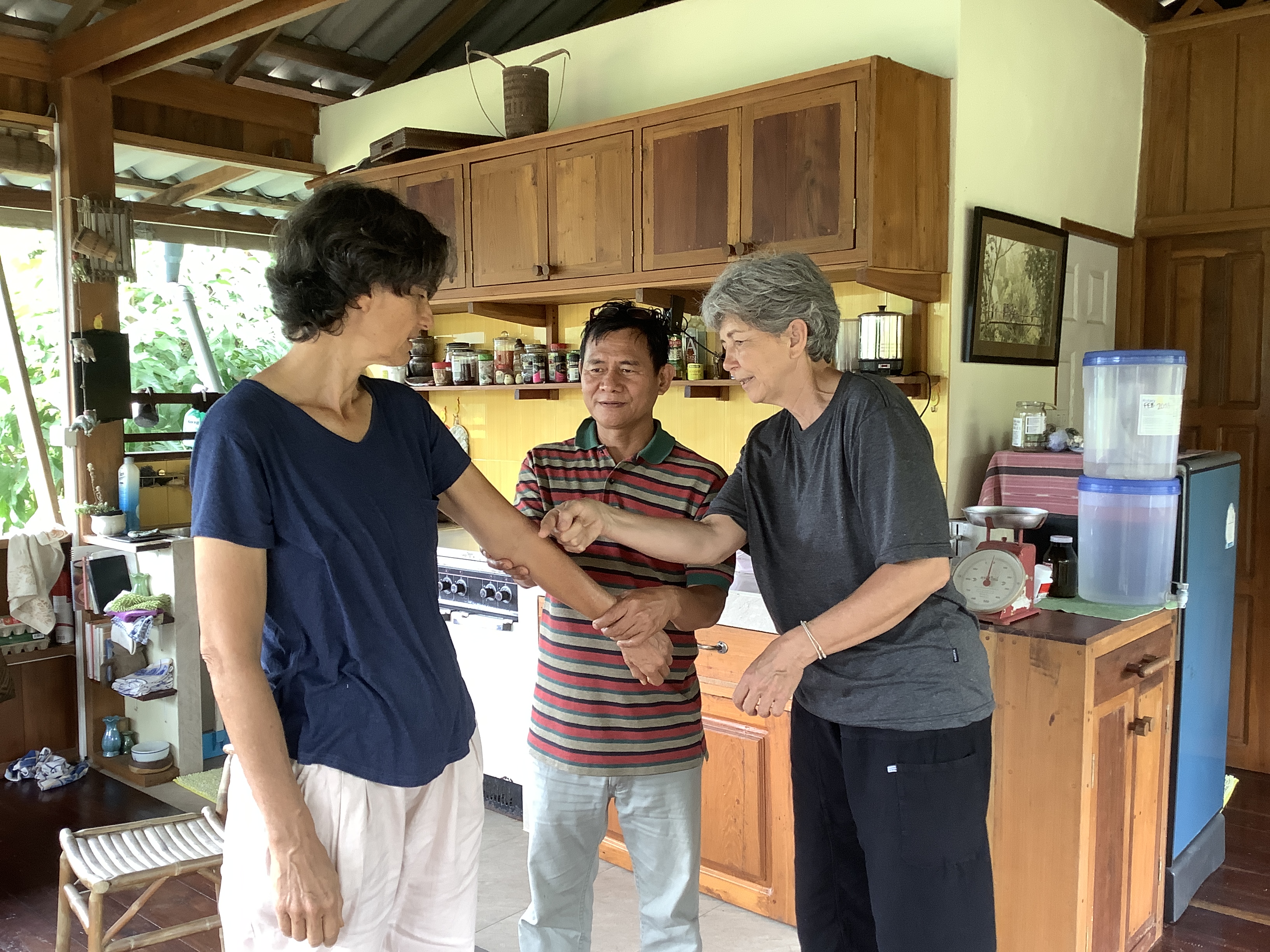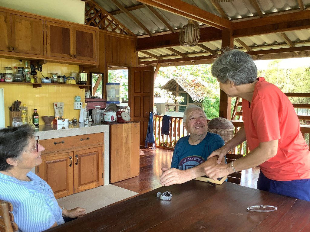 Bon, voilà qui change tous les plans qu’on était en train d’échafauder…La bonne nouvelle, c’est qu’Elisabetta n’est pas du tout flippée par le covid donc je peux rester chez elle au moins le temps de voir comment je fais. Comme elle a une vie en dehors de moi, et que je ne voudrais pas la contaminer (ce n’est pas comme si on avait déjà passé toute la semaine ensemble 😇), et qu’elle contamine les autres à son tour, je décide d’aller à Mae Sot dès le lendemain. J’irai me faire tester officiellement et encore j’hésite, je n’ai pas envie de me retrouver coincée dans un hôpital thaïlandais 10 jours et je n’ai aucun symptômes qui nécessitent d’occuper un lit qui pourrait être bien plus utile à un vrai malade ! On prévient le père Alain que je ne pourrai malheureusement pas le rejoindre lundi, et même s’il est déçu, il est totalement d’accord, son centre pourrait être fermé s’il y a des cas positifs. Elisabetta va chercher ma valise restée à Ban Tha Yang (je n’avais pris qu’un sac à dos pour rester chez elle), elle en profite pour tester Francis qui était là-bas et qui avait été un peu malade aussi en début de semaine chez elle, mais il est négatif, ouf 😅.