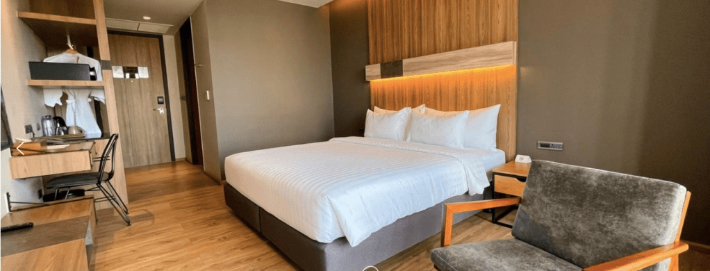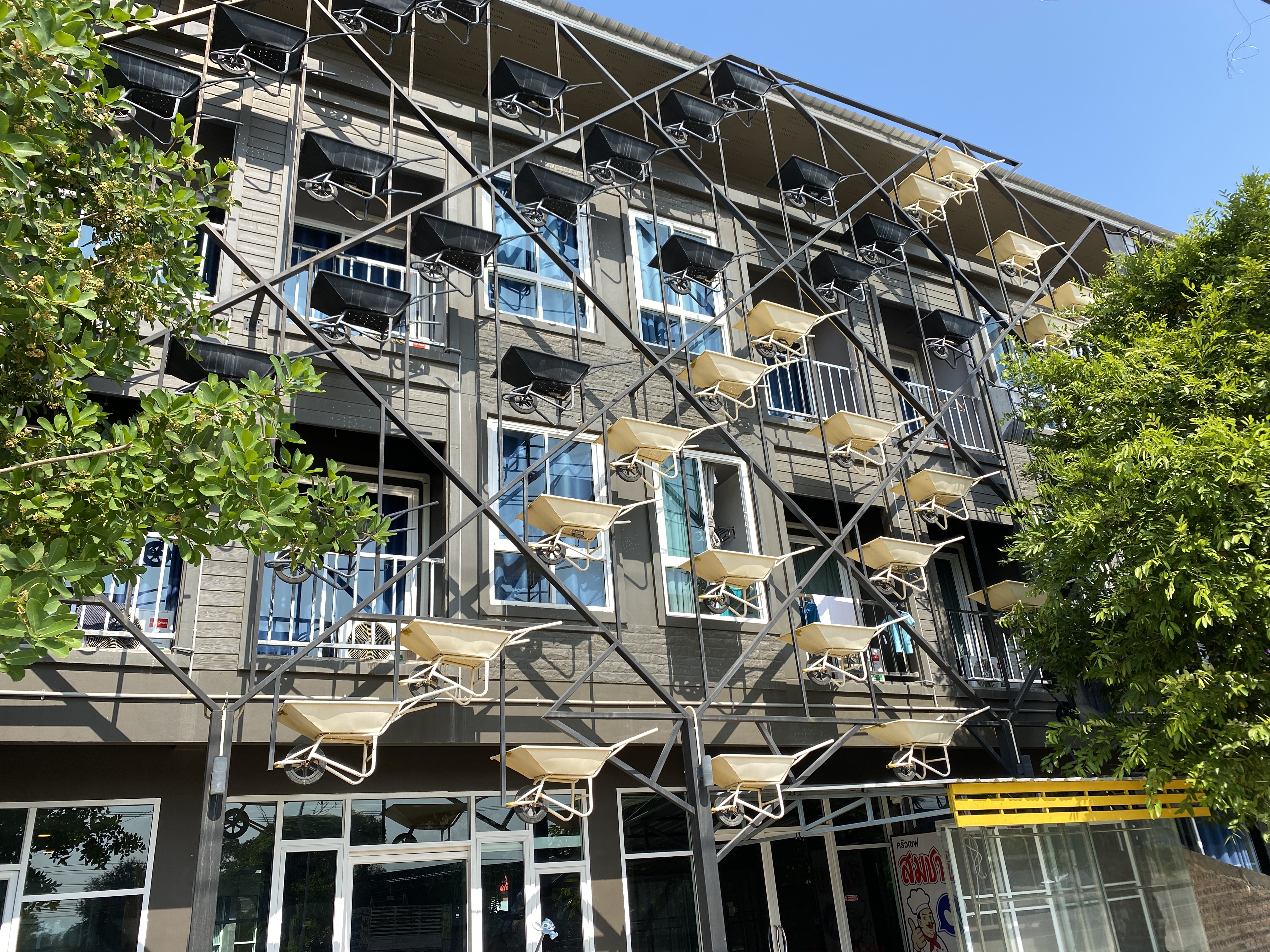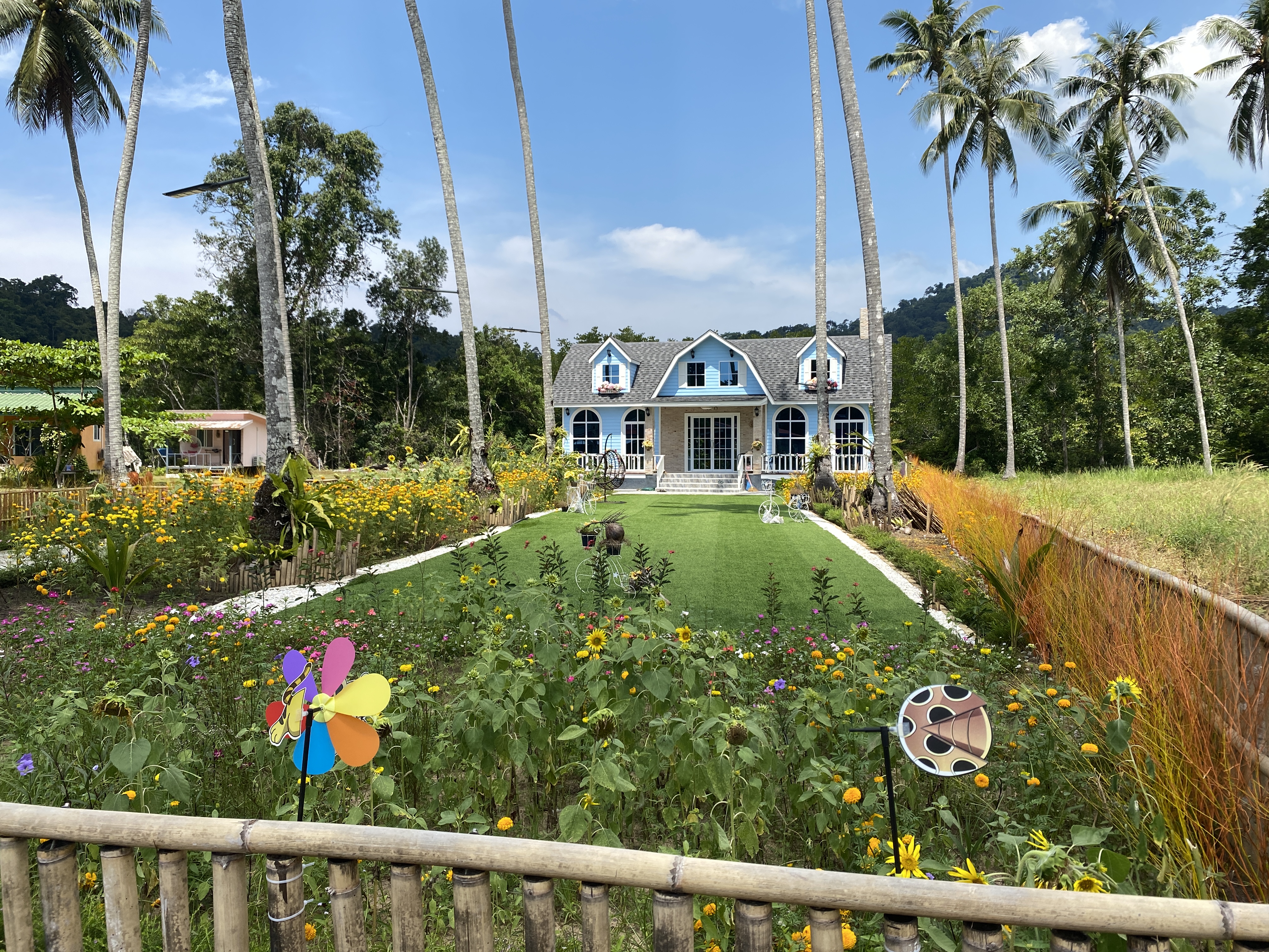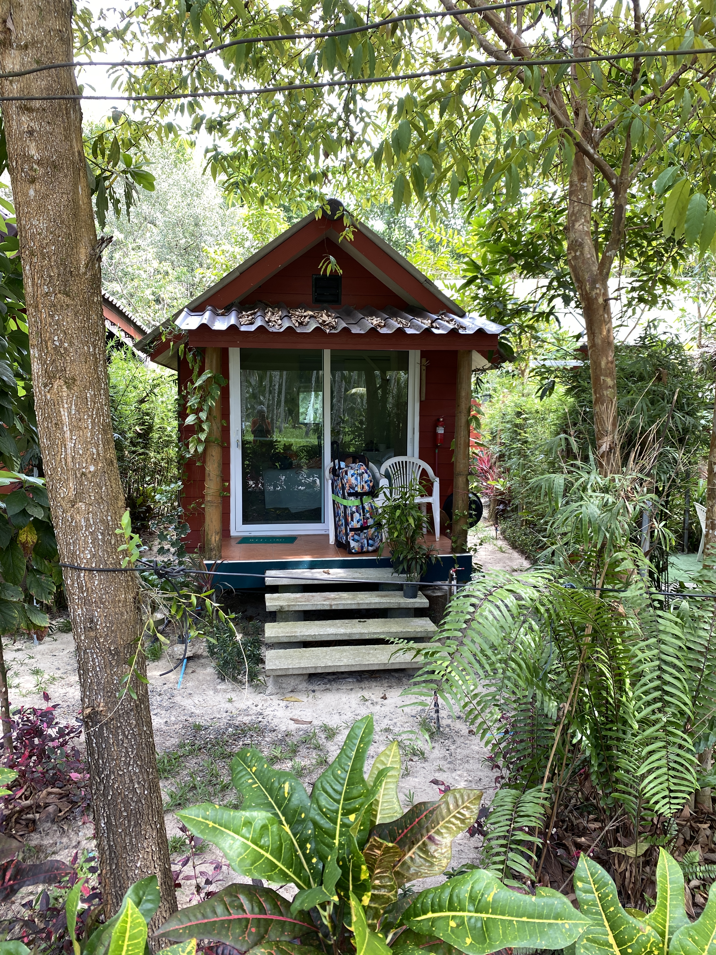 Une guesthouse rigolote, la pelouse est fausse, on ne se rend pas bien compte sur la photo. Il y a 4 petites maisons indépendantes, et c’est tout près d’une plage sympa.