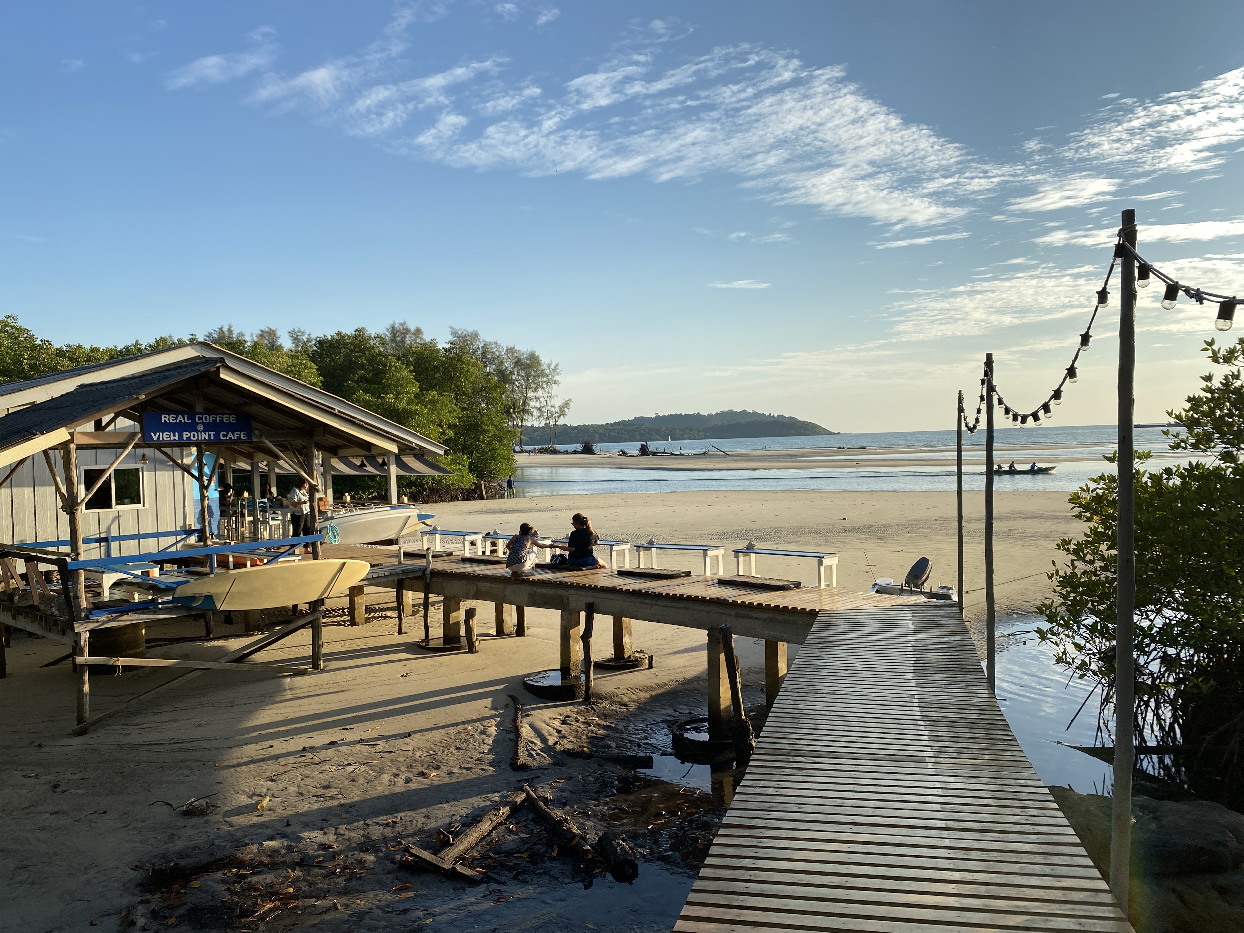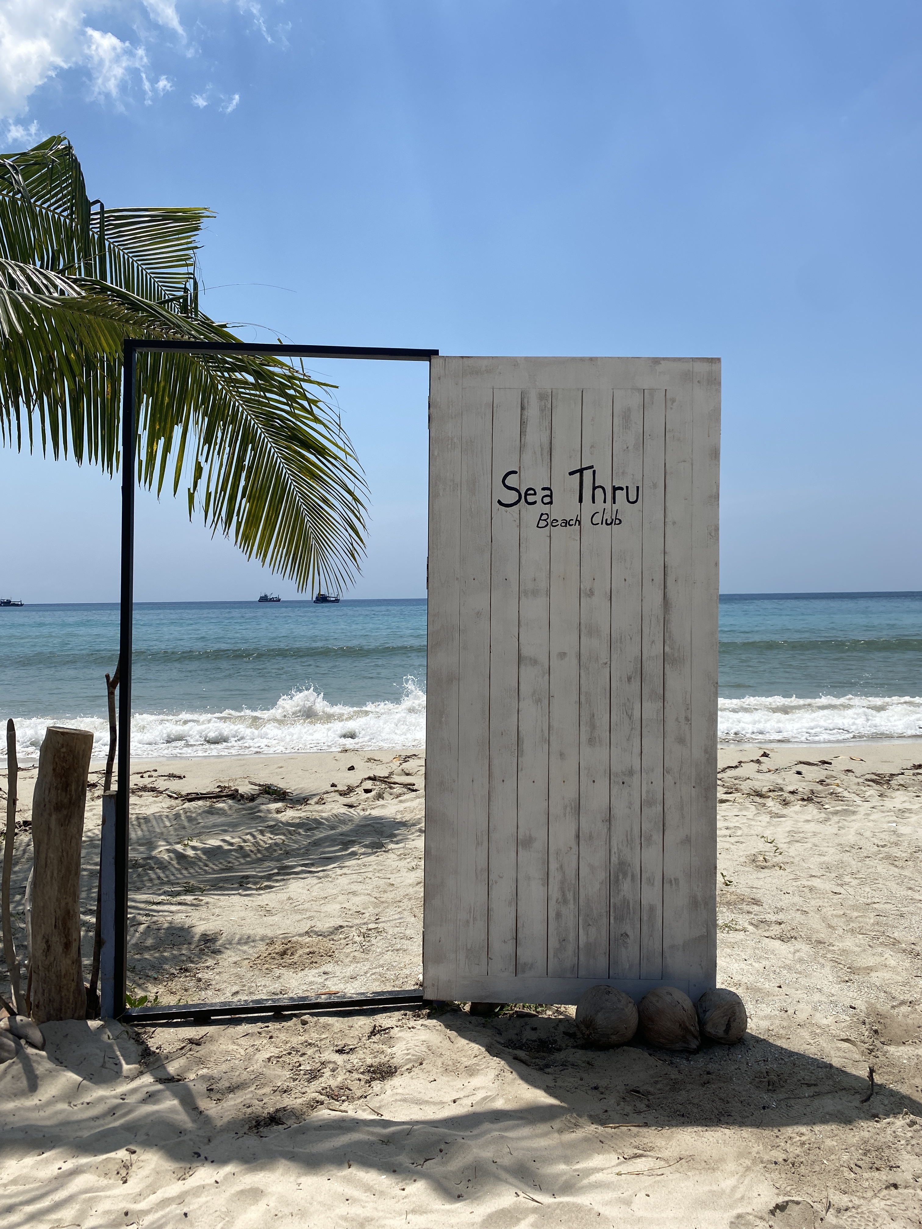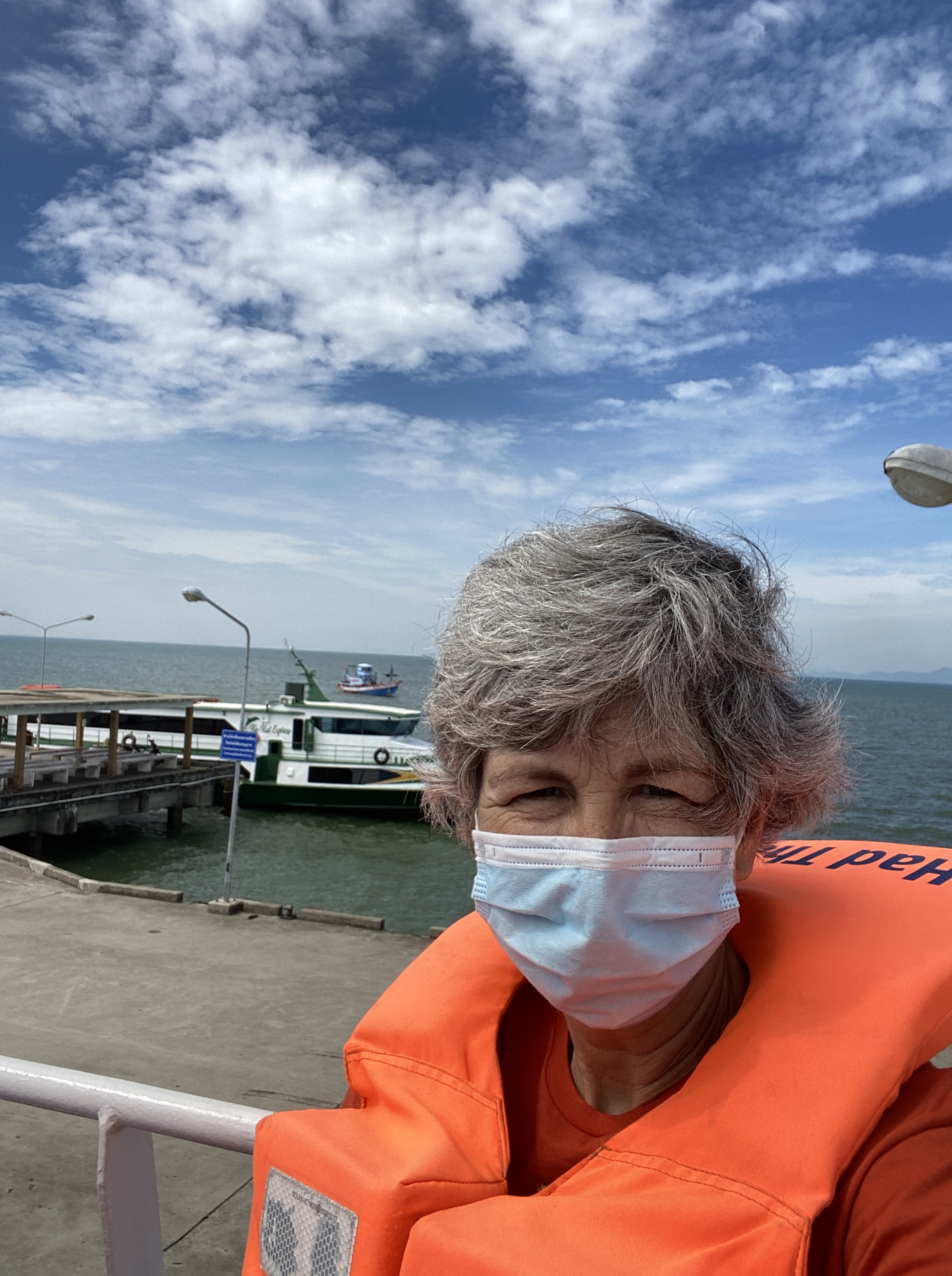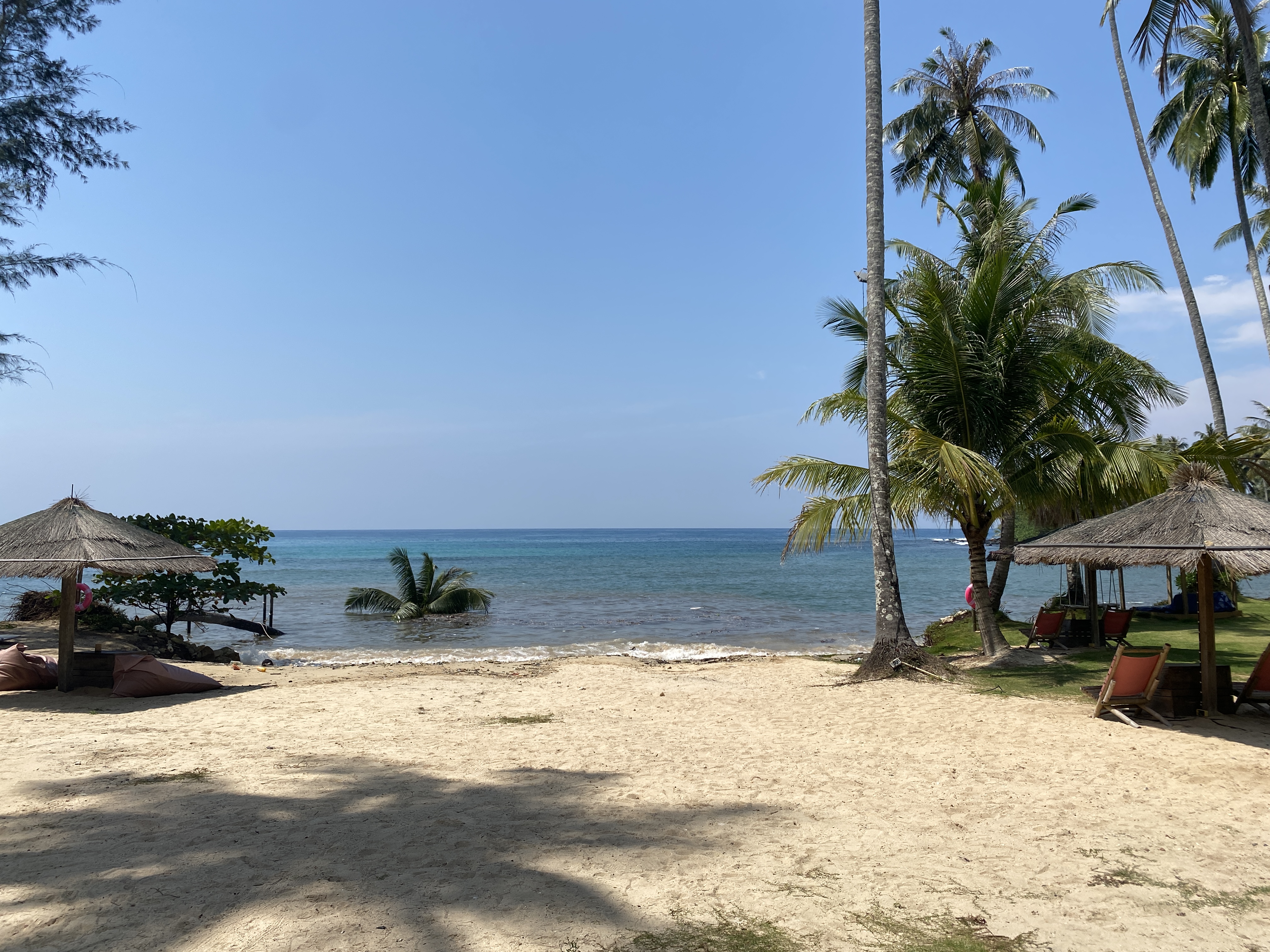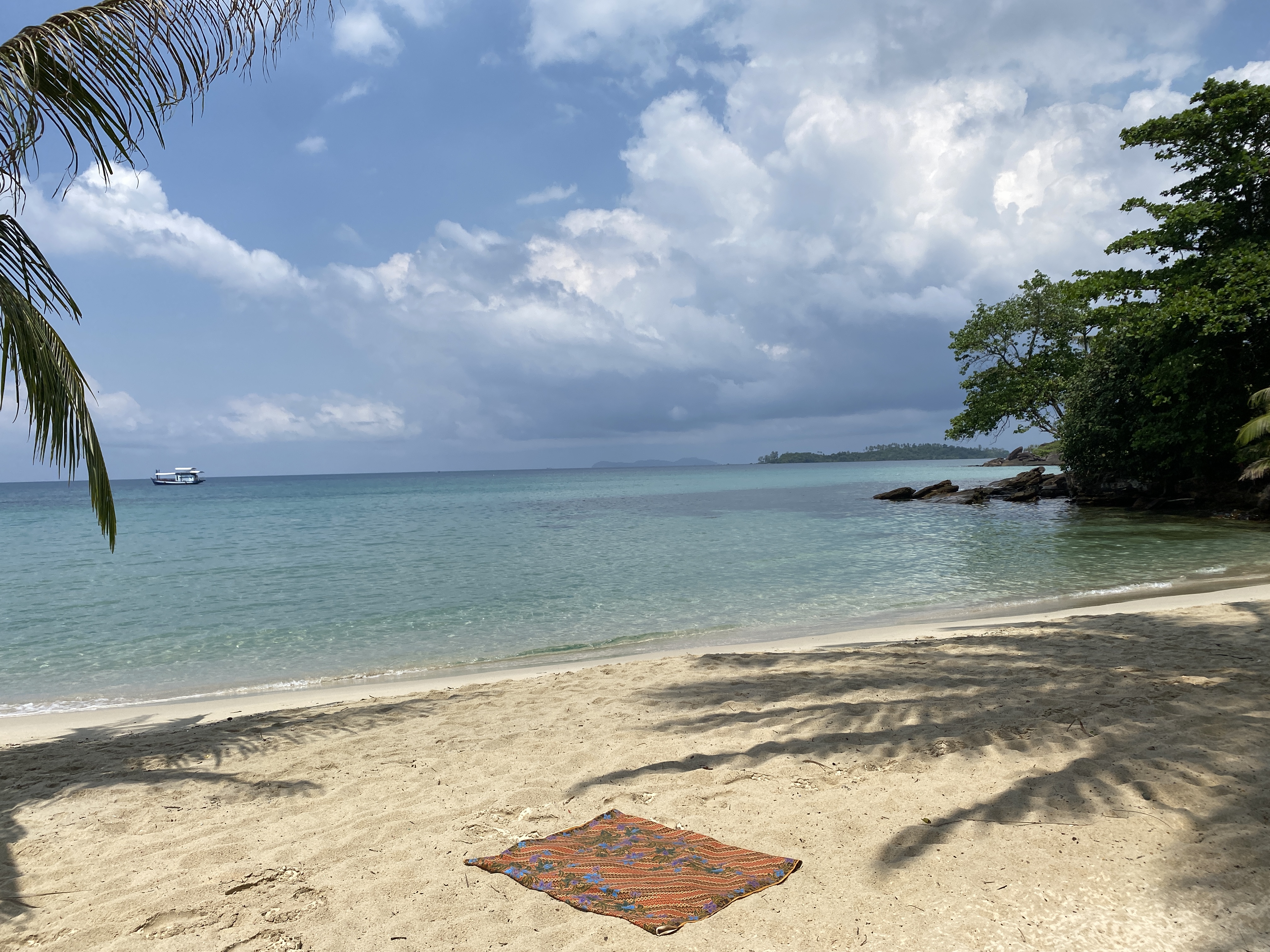 Ma plage sympa et là encore, je suis seule, dans l’eau et sur le sable et pourtant il y a des touristes, mon bateau était plein à l’aller. Ils doivent aller faire des excursions de snorkeling ou rester dans leurs hôtels. Le gouvernement thaïlandais a offert aux plus pauvres de la classe moyenne de payer une partie de leurs vacances. Ils prennent en charge le transport et une grande partie du coût des nuits dans les hôtels. L’idée est de permettre aux gens de prendre trois jours (ils viennent surtout sur un week-end, ils n’ont pas cinq semaines de vacances !) et de faire fonctionner les hôtels, une façons de les soutenir pendant cette crise. En fait, je les ai surtout croisés en fin de journée, là la plage est envahie de gens qui se prennent en photo devant le coucher de soleil 😉.