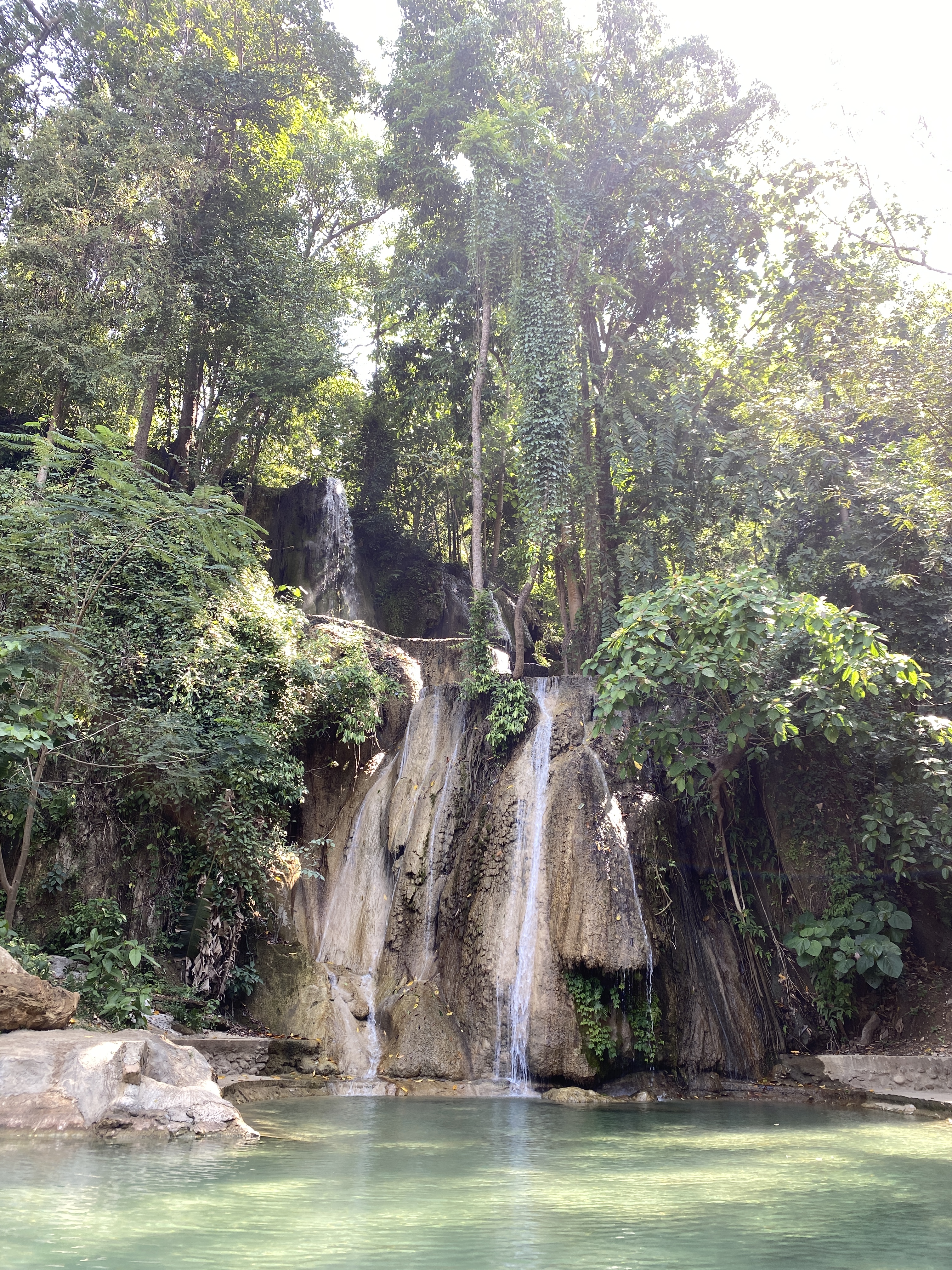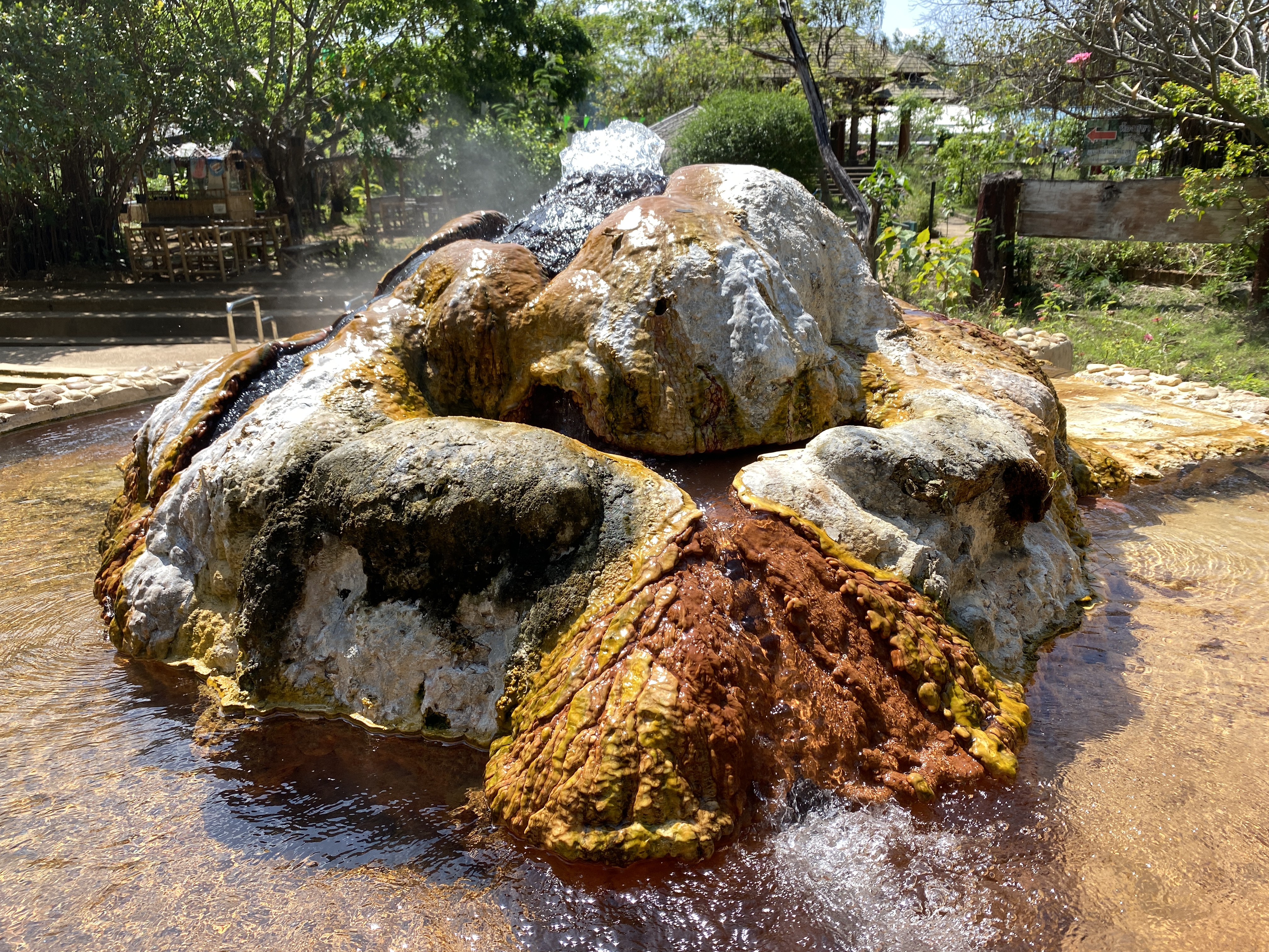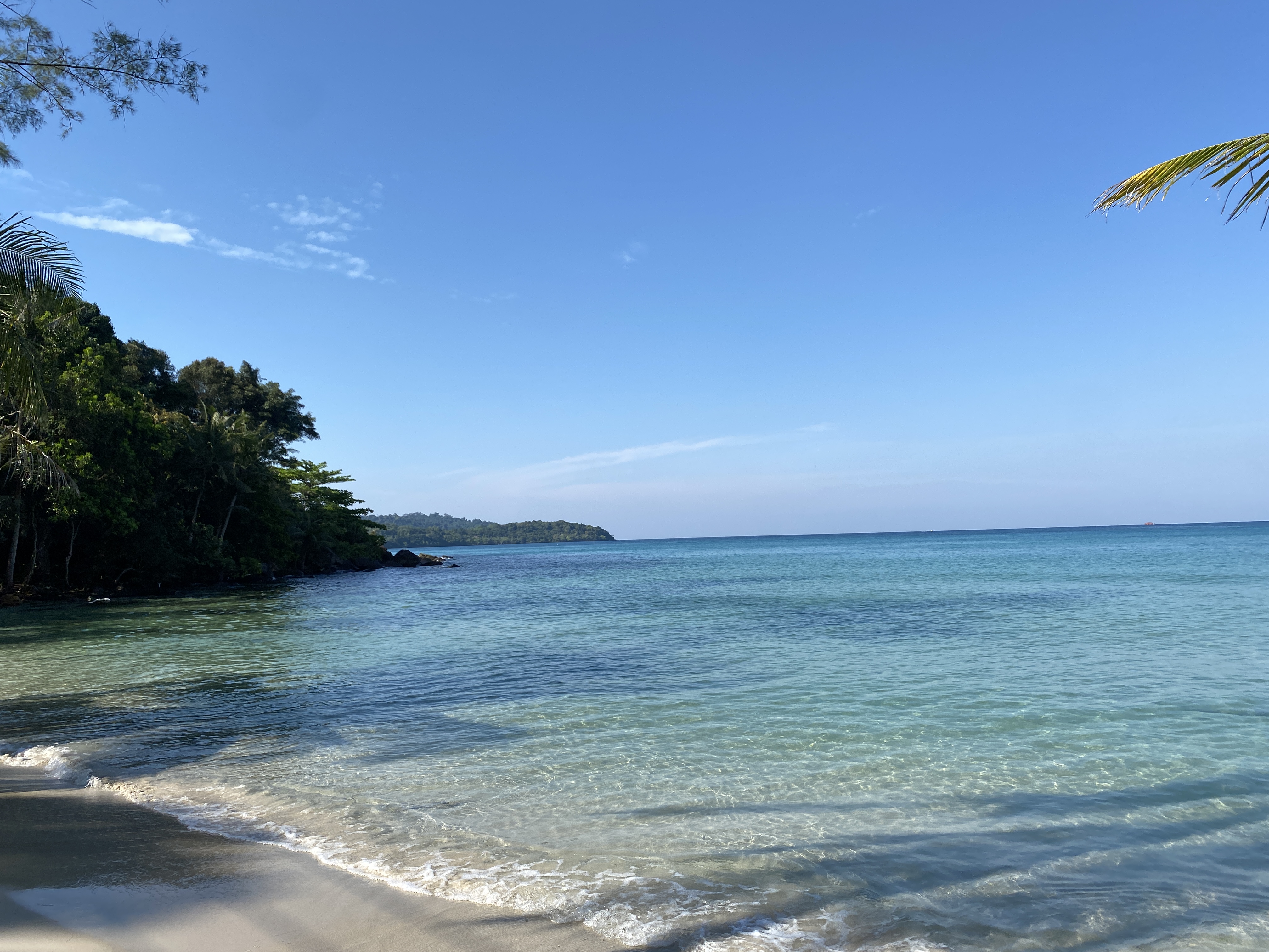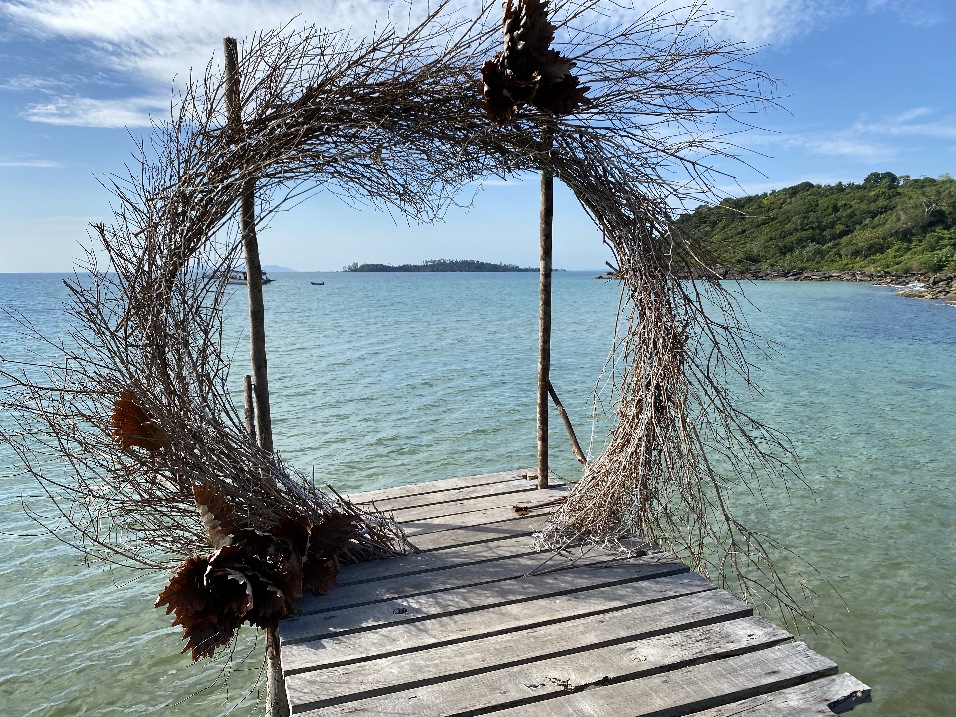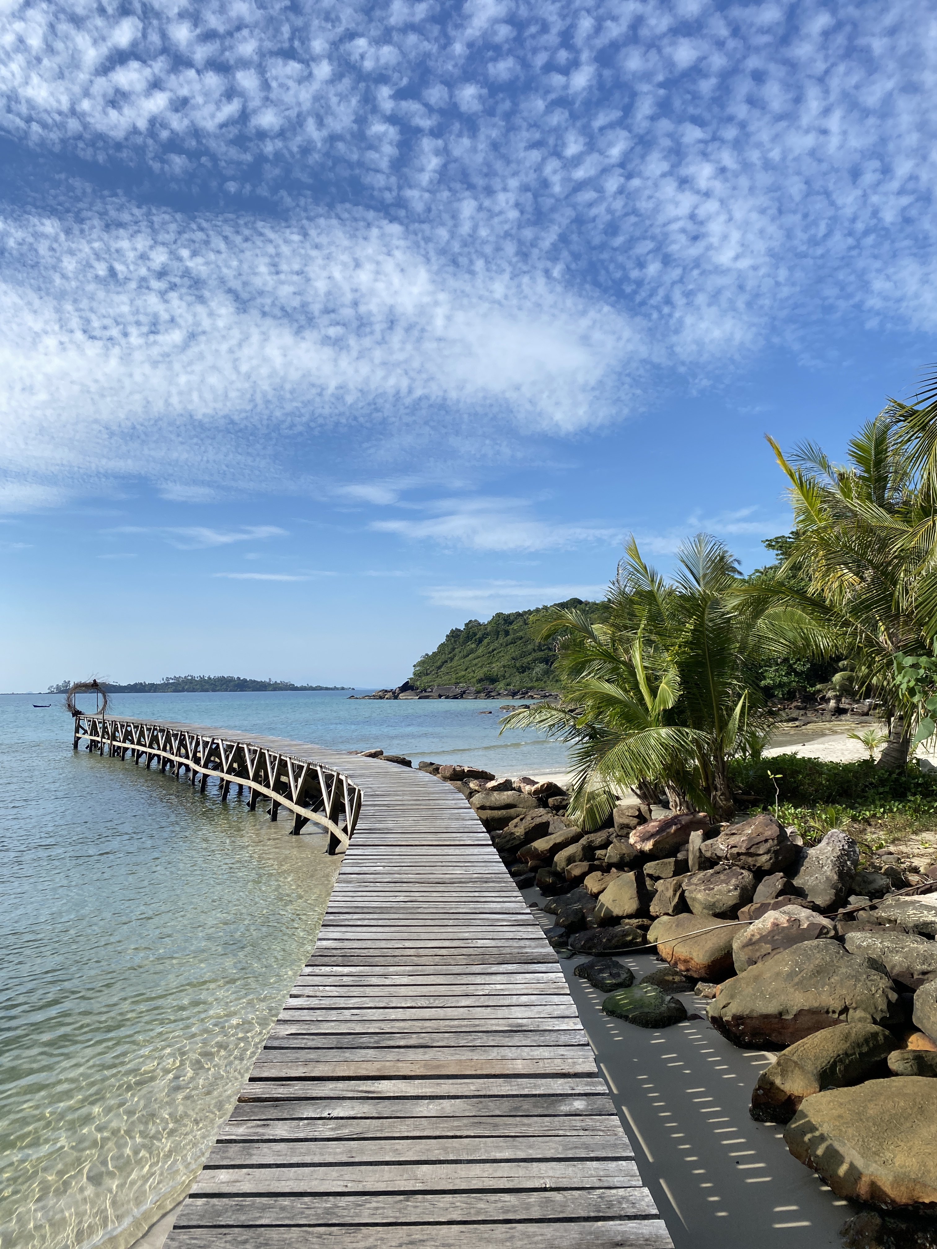 Ma plage sympa et là encore, je suis seule, dans l’eau et sur le sable et pourtant il y a des touristes, mon bateau était plein à l’aller. Ils doivent aller faire des excursions de snorkeling ou rester dans leurs hôtels. Le gouvernement thaïlandais a offert aux plus pauvres de la classe moyenne de payer une partie de leurs vacances. Ils prennent en charge le transport et une grande partie du coût des nuits dans les hôtels. L’idée est de permettre aux gens de prendre trois jours (ils viennent surtout sur un week-end, ils n’ont pas cinq semaines de vacances !) et de faire fonctionner les hôtels, une façons de les soutenir pendant cette crise. En fait, je les ai surtout croisés en fin de journée, là la plage est envahie de gens qui se prennent en photo devant le coucher de soleil 😉.