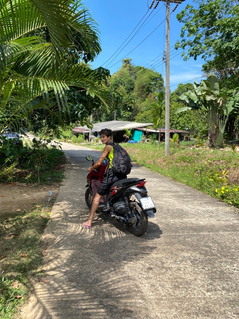 Je suis quasiment la seule à rouler avec un casque sur cette île, quand on voit ce qui tombe sur le route, je trouve ça plus prudent 😜.