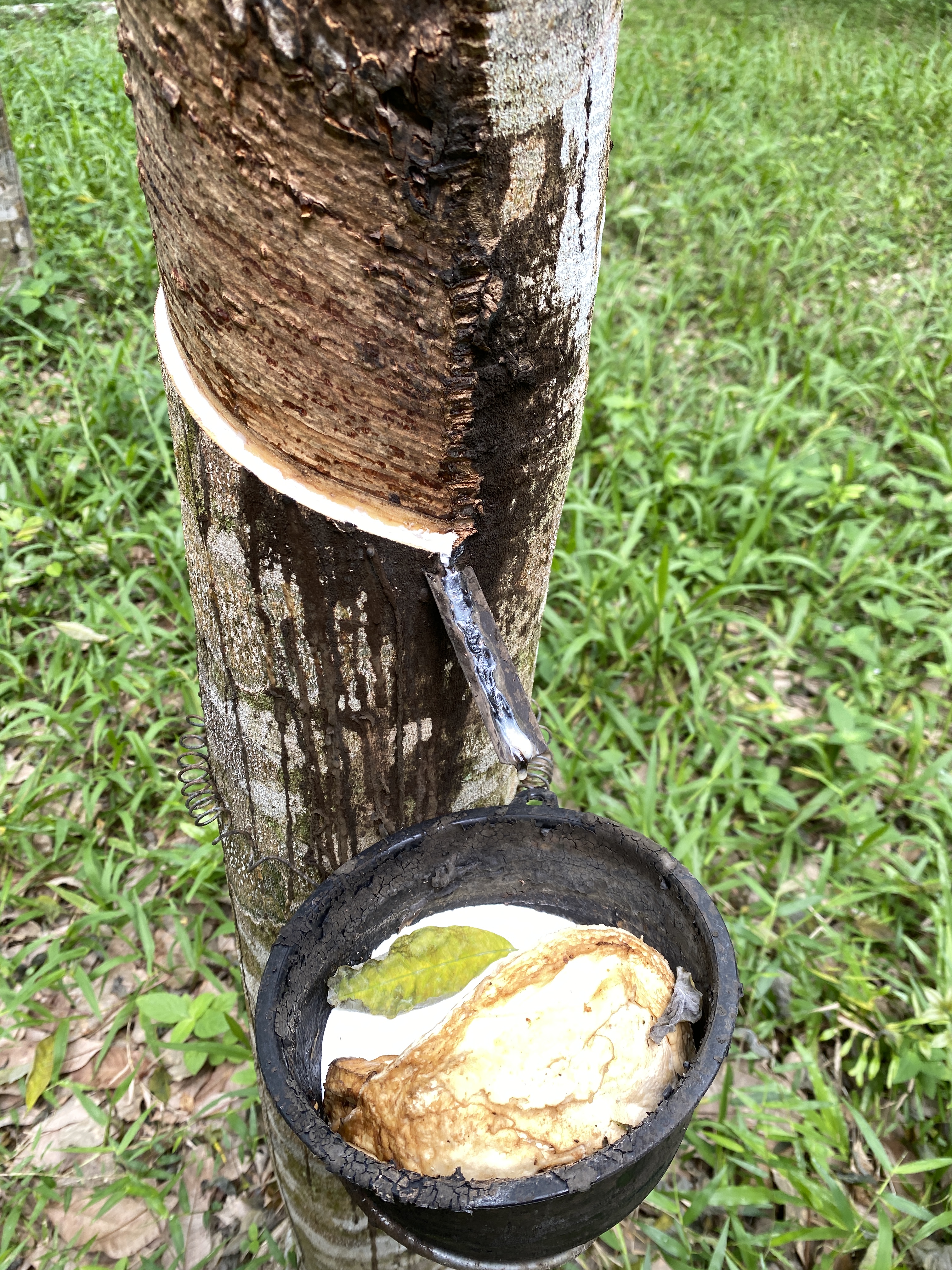 Les habitants de l’île vivent du tourisme, de la pêche, de la récolte de noix de coco qui sont envoyées sur le continent pour être transformées (ils fabriquent aussi un peu d’huile mais plutôt pour la consommation locale) et de la récolte du latex sur les hévéas. Le latex se récolte la nuit parce que c’est le moment où l’arbre en produit le plus. La femme de ménage de mes propriétaires cumule comme ça deux emplois, ménage quelques heures dans la journée et récolte de latex la nuit.