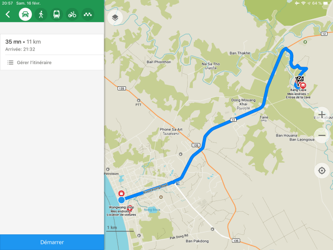 Maps.me est devenu mon meilleur ami mais même avec ça, je trouve le moyen de me perdre…ce qui me permet de tester assez rapidement ma maîtrise de l’engin sur une piste bien pourrie, un petit 360° en dérapage dans du sable, pas voulu, mais je ne suis pas tombée, alors je considère que ça va le faire. Reste à comprendre l’intérêt de rétrograder, je ne cale même pas quand je m’arrête et que je suis encore en 4ème…
