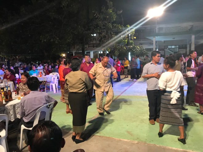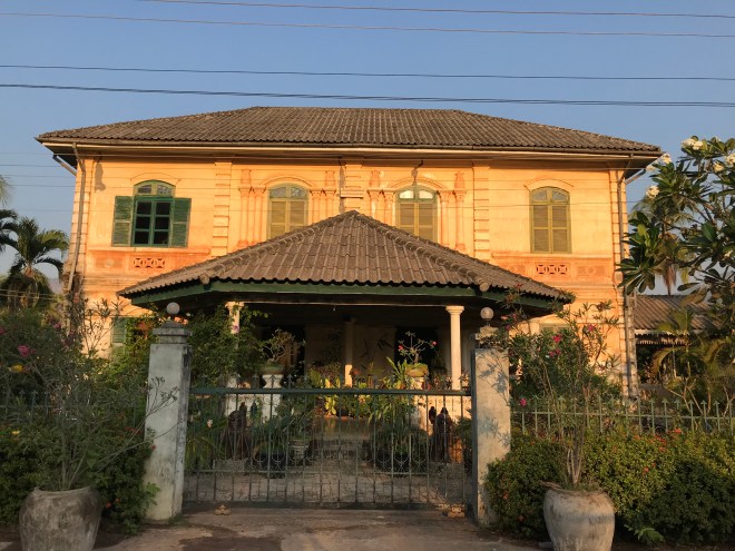 Je finis la journée par une patiente à Champassak, personne très démunie dont Nilavanh s’occupe, elle est tombée de moto il y a 6 semaines et a toujours mal au genou. Les radios montrent une petite fracture du plateau tibial mais ici, pas de plâtre parce que ça macère. Donc renvoyée chez elle, au lit puis déambulateur. Elle a aussi un oeuf de caille sous l’oeil et c’est hyper sensible encore (fracture du zygomatique ??), je lui conseille de mettre de la glace pour faire dégonfler. J’arrive à bien travailler même si c’est sur son lit, je ne deviens pas difficile sur les divers endroits où je peux pratiquer, adaptabilité ! J’irai la revoir la revoir lundi.