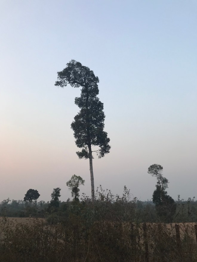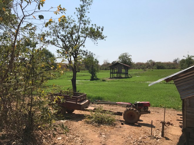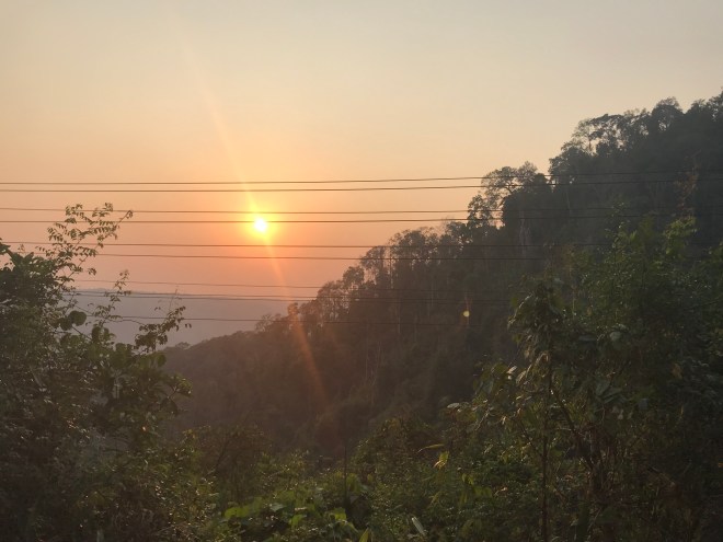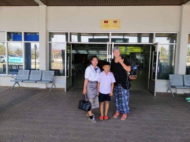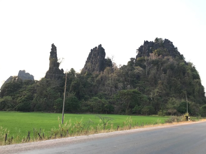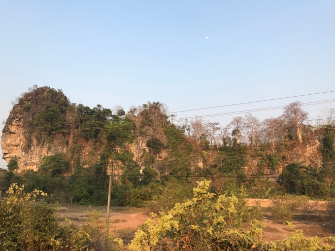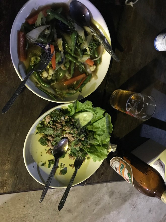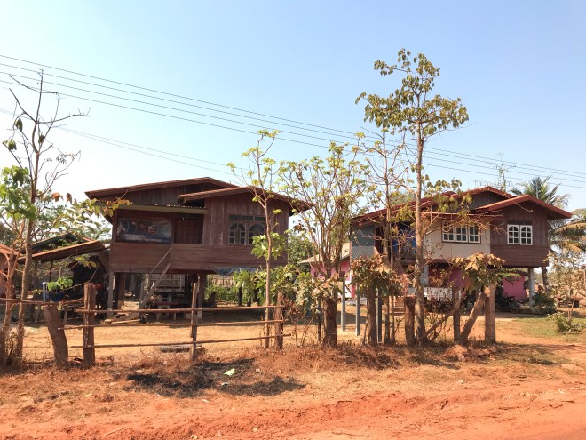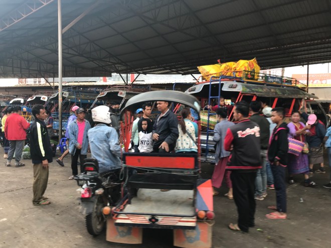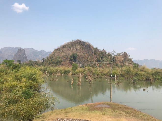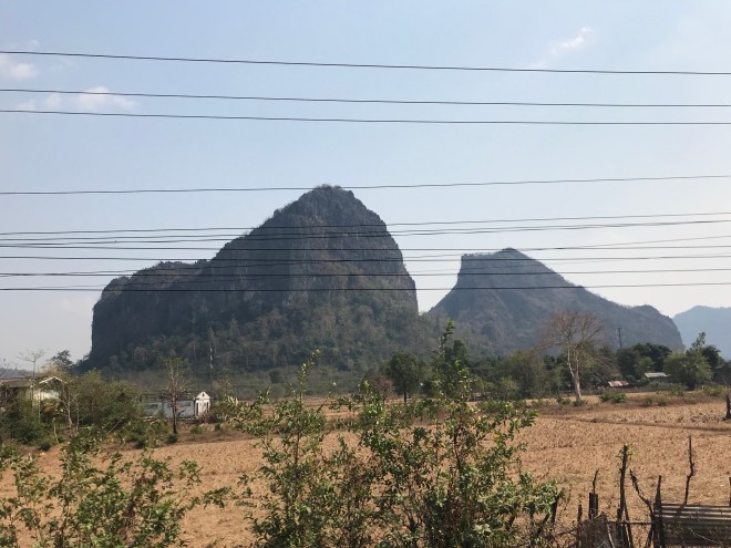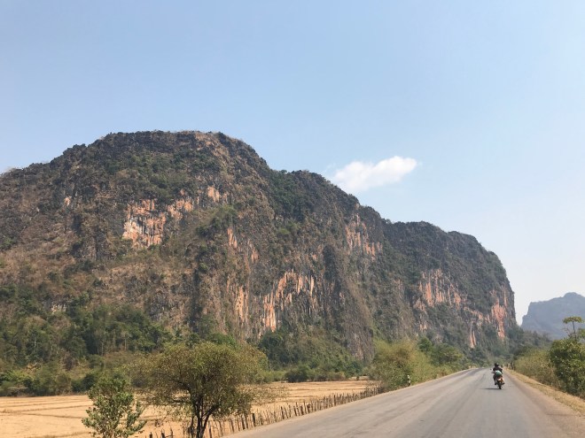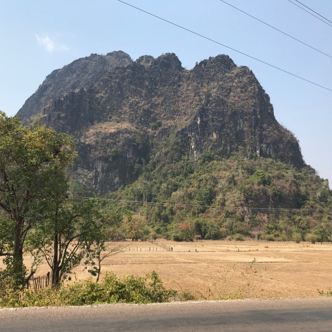La jeune fille, qui tient un petit commerce typiquement lao, c’est-à-dire un peu de tout, nous parle de hong-mo, un des mots que je connais en laotien puisqu’il veut dire hôpital…je lui demande si c’est loin (merci Google translation), c’est pas très loin mais trop pour y aller à pied. Me voilà donc ambulancière, en moto. C’est compliqué parce qu’il a mal, n’a qu’une main pour se tenir à moi, que mes démarrages et changements de vitesses sont encore un peu brusques (j’ai bien cru le perdre sur une accélération incontrôlée…), et qu’en plus, il faut anticiper les vaches et les chiens qui pourraient traverser devant nous. Je crois que ça restera un des kilomètres les plus longs de ma vie.