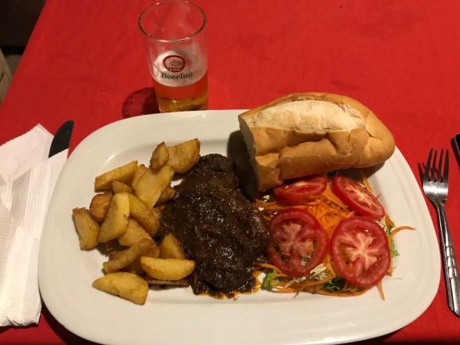 Après-midi farniente, deux heures au bord de la piscine et un peu dedans quand même 😉 puis apéro en terrasse et dîner au resto de la belle-sœur de William, et au lit de bonne heure.